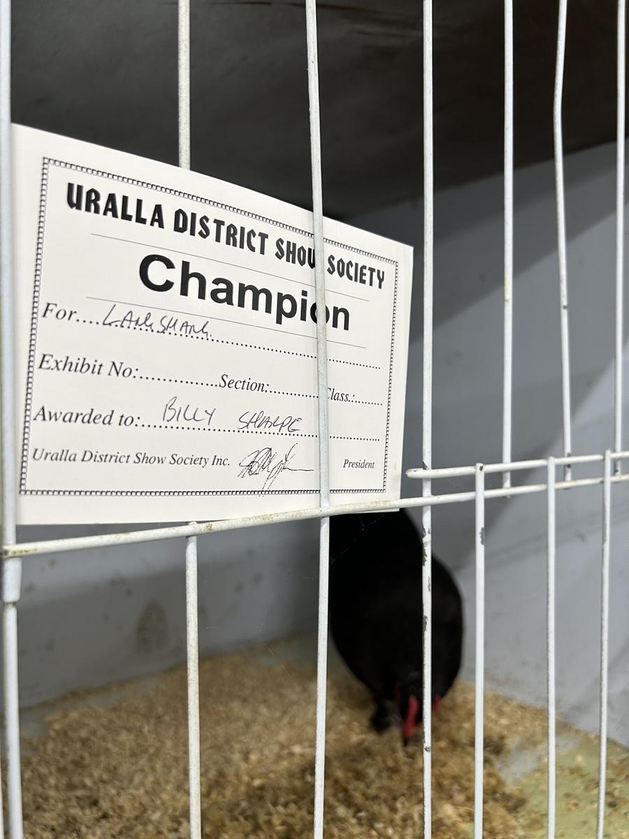 Billy Sharpe was also awarded Champion for his Lang Shank Chicken: