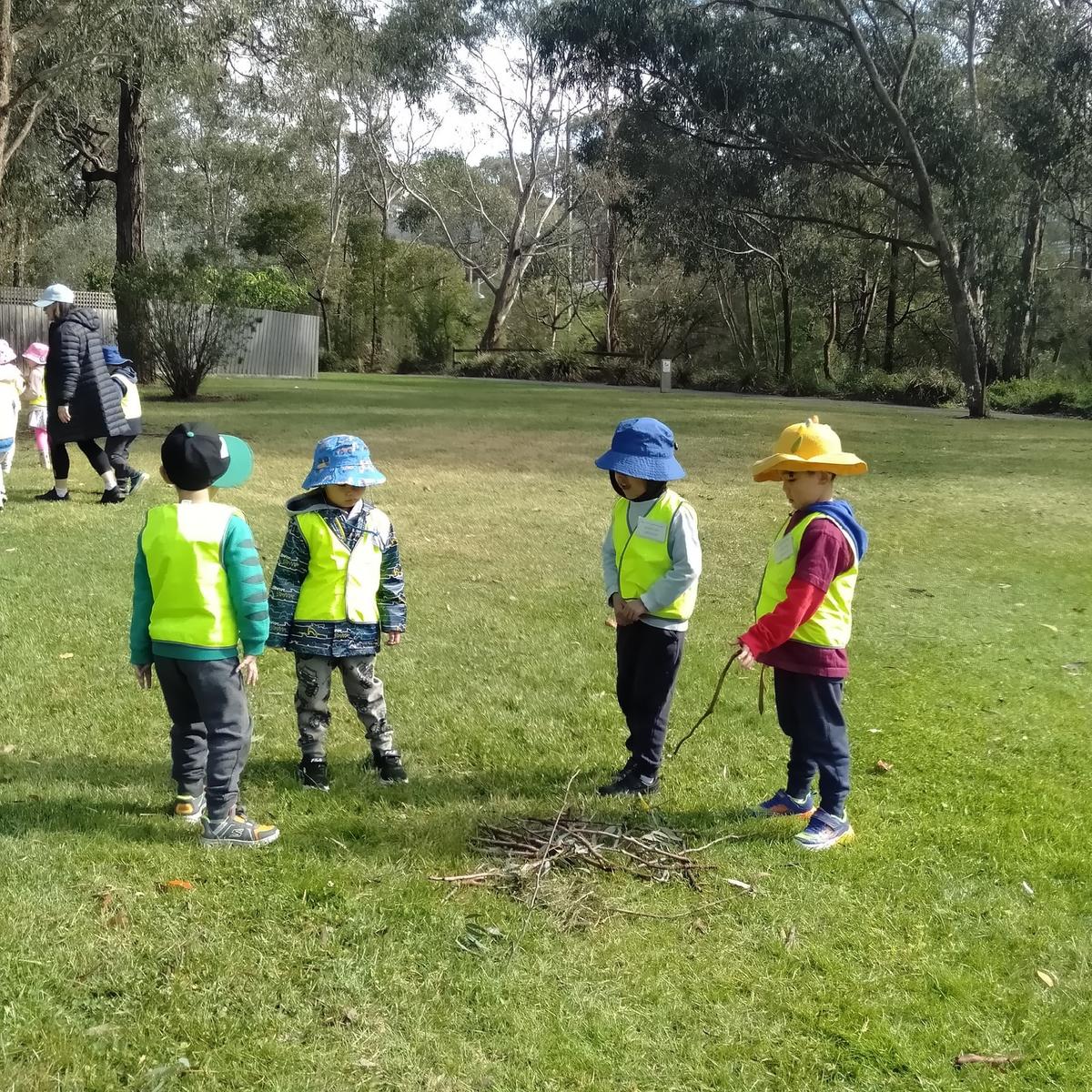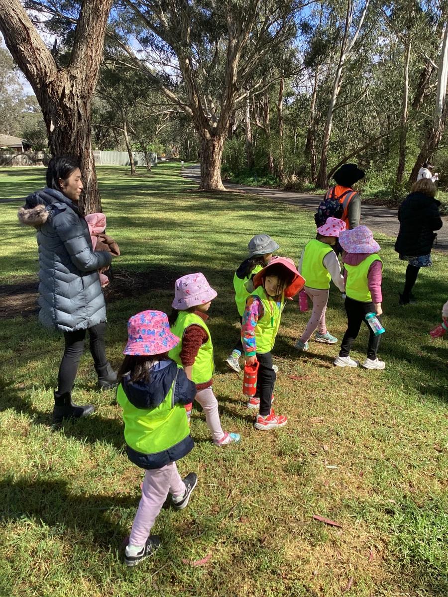 On Monday we had our first nature adventure play session at Frank Sedgman Reserve. The children popped on their excursion vests, and set off out of kinder, down the road towards the reserve.