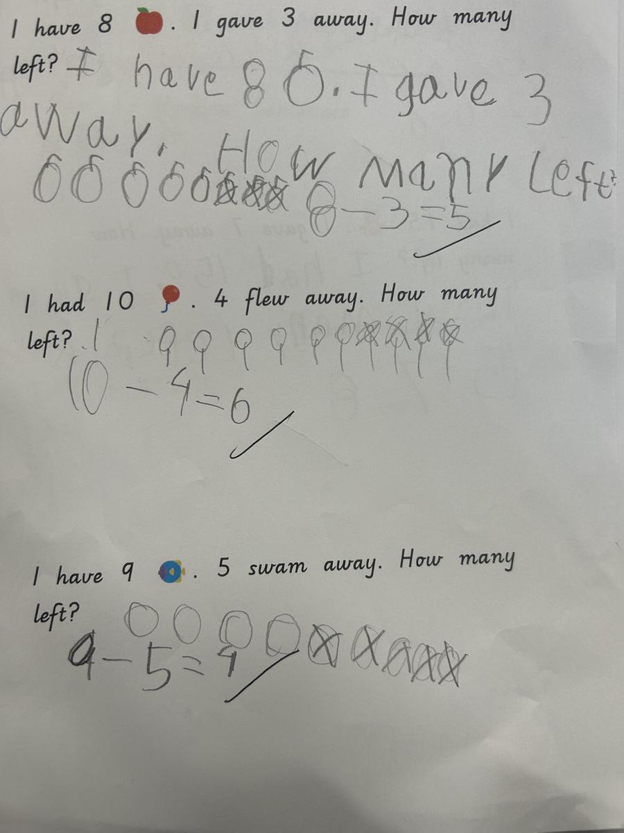 In Numeracy, we have wrapped up our subtraction unit by working through worded problems. Students have been learning to understand subtraction language such as “take away” and “how many left?” within a sentence. They have also practised generating their own subtraction number sentences and figuring out the answers from the problems given. It has been wonderful to see their growing confidence in using mathematical language to explain their thinking.
