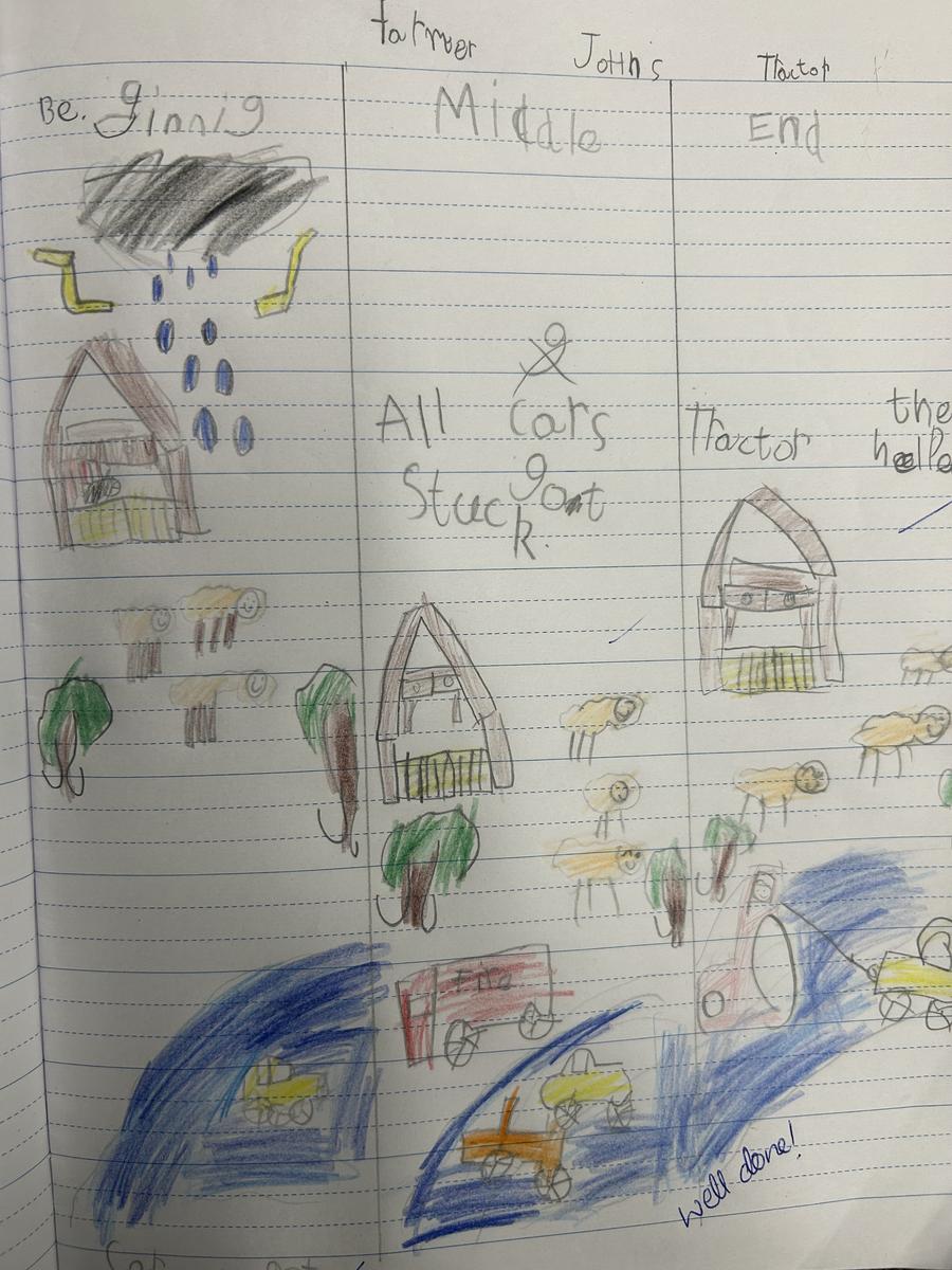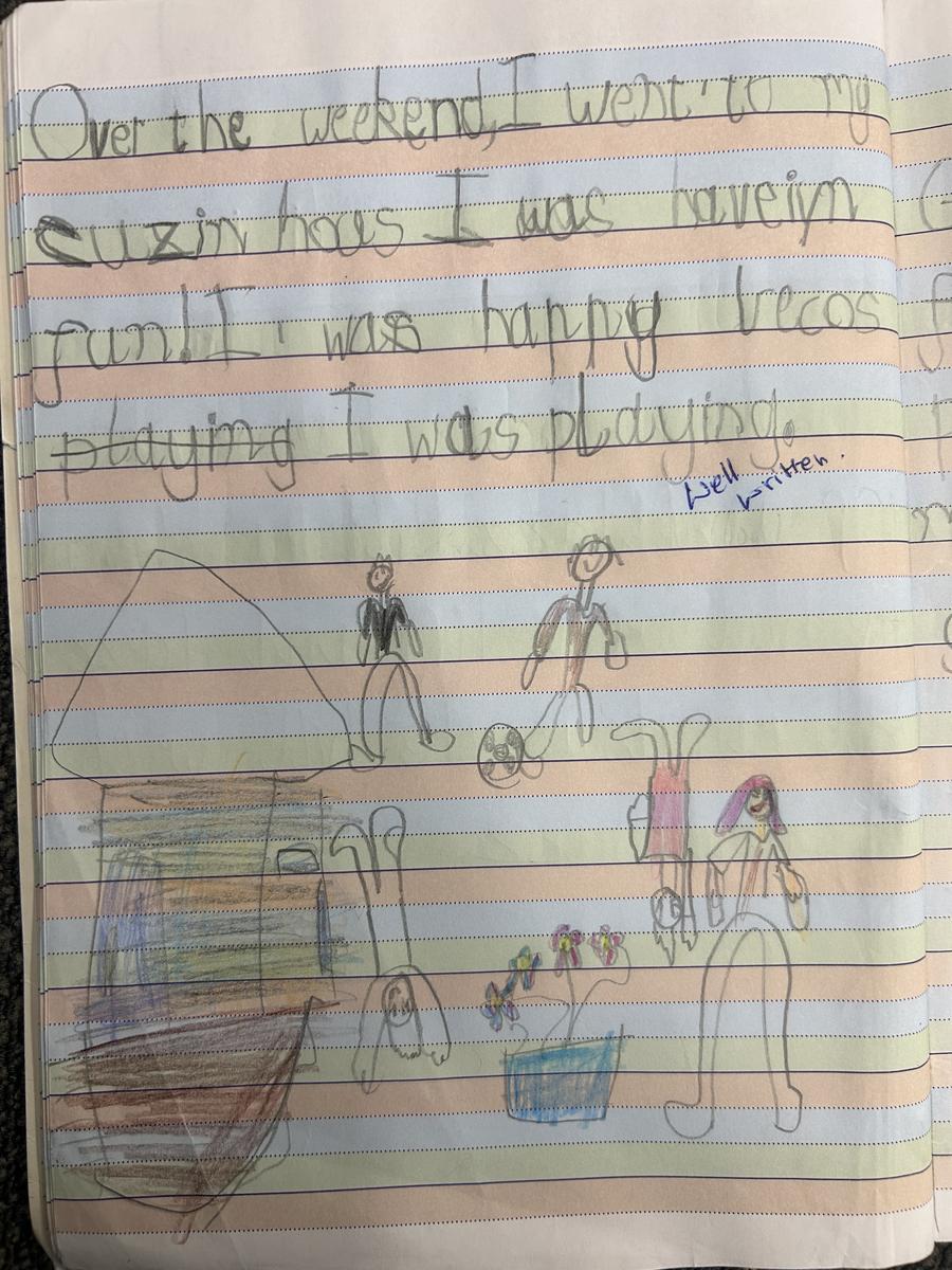 In writing, we have been learning about simple sentence structure. As we move towards writing our own stories, students are learning to make sure every sentence includes a noun and a verb, and possibly even some adjectives to make their writing more interesting!