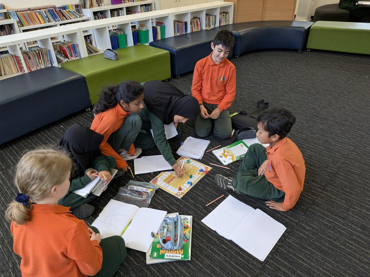 We started our learning this term by revisiting fractions and played fraction games to consolidate our understanding of equivalent fractions and reducing fractions. We explored transformations (slides & translations), turns (rotations), flips (reflections), and enlargements (scale) and how they appear in everyday life. We spotted symmetry and movement in letters, numbers, logos, road signs, and sport lines. Students used little cut-outs of shapes (triangles, squares) and worked out what a slide or flip looked like in their grid books, remembering to count their steps before the final position.