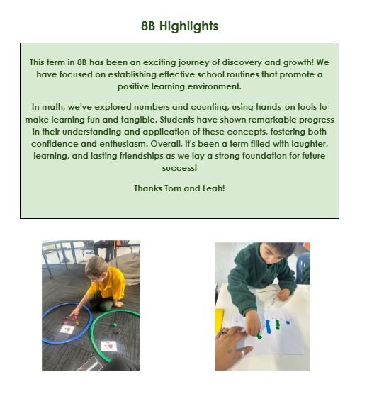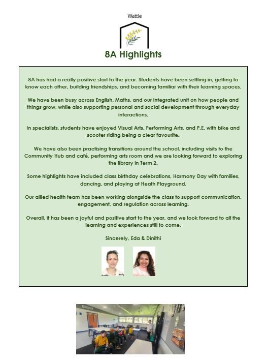 Overall, Term 1 has been a positive foundation, with students showing increasing independence, engagement and readiness for continued learning. We are looking forward to continuing to build on this strong start in Term 2, with a focus on deepening student learning, strengthening independence and supporting every student to achieve their goals.