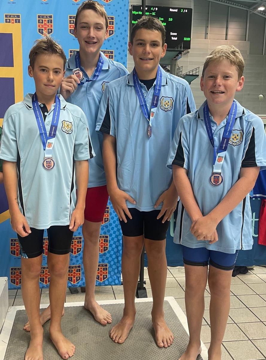 Congratulations to Blair, Alex, Tom, and Beau for earning a Bronze medal in the open invitational handicap relay at the NSWCHSSSA Secondary Swimming Championships in Sydney on 9 April!