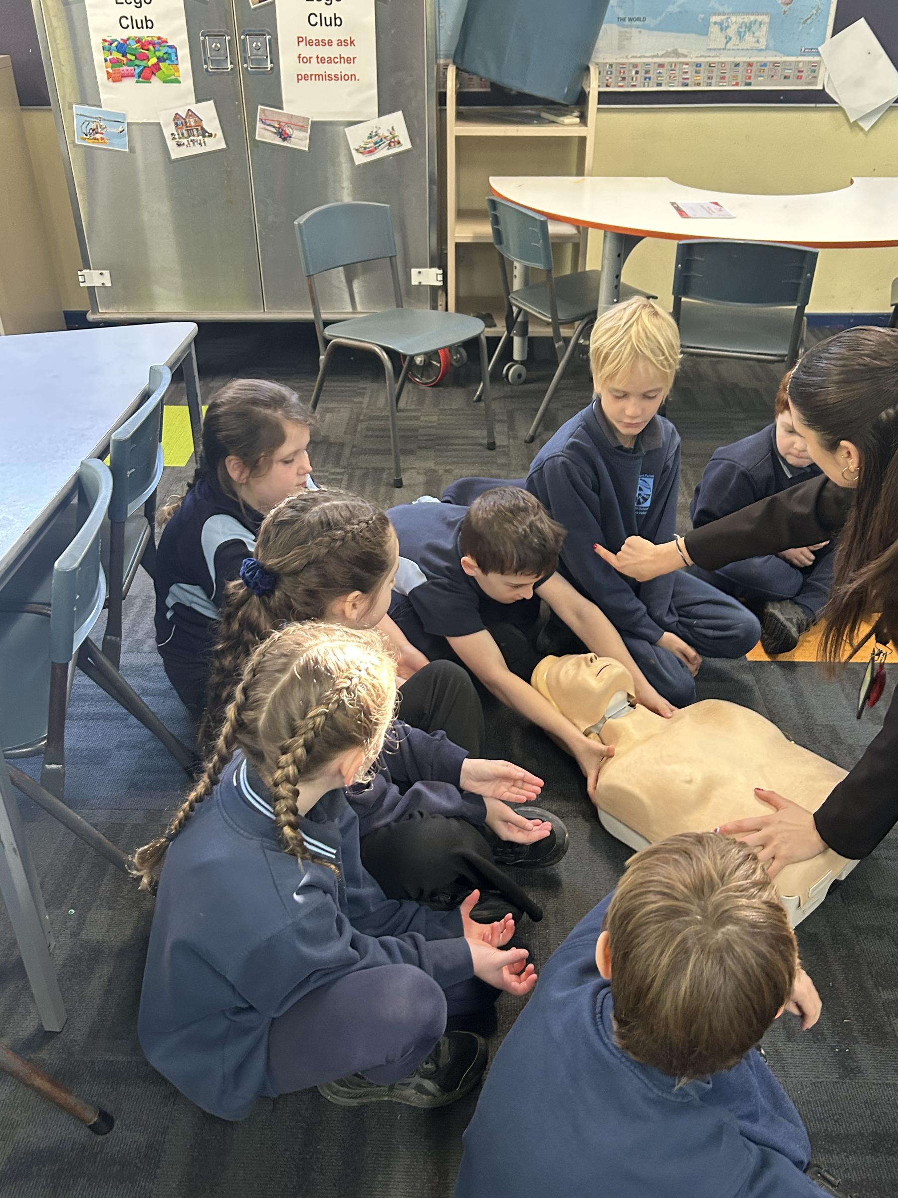 The 5/6 students revised DRSAB and learned the practical CPR component. They went through how to perform CPR and when it is required in a First Aid situation. They then also participated in group problem-solving scenarios based on a variety of first aid situations allowing them to apply their knowledge.