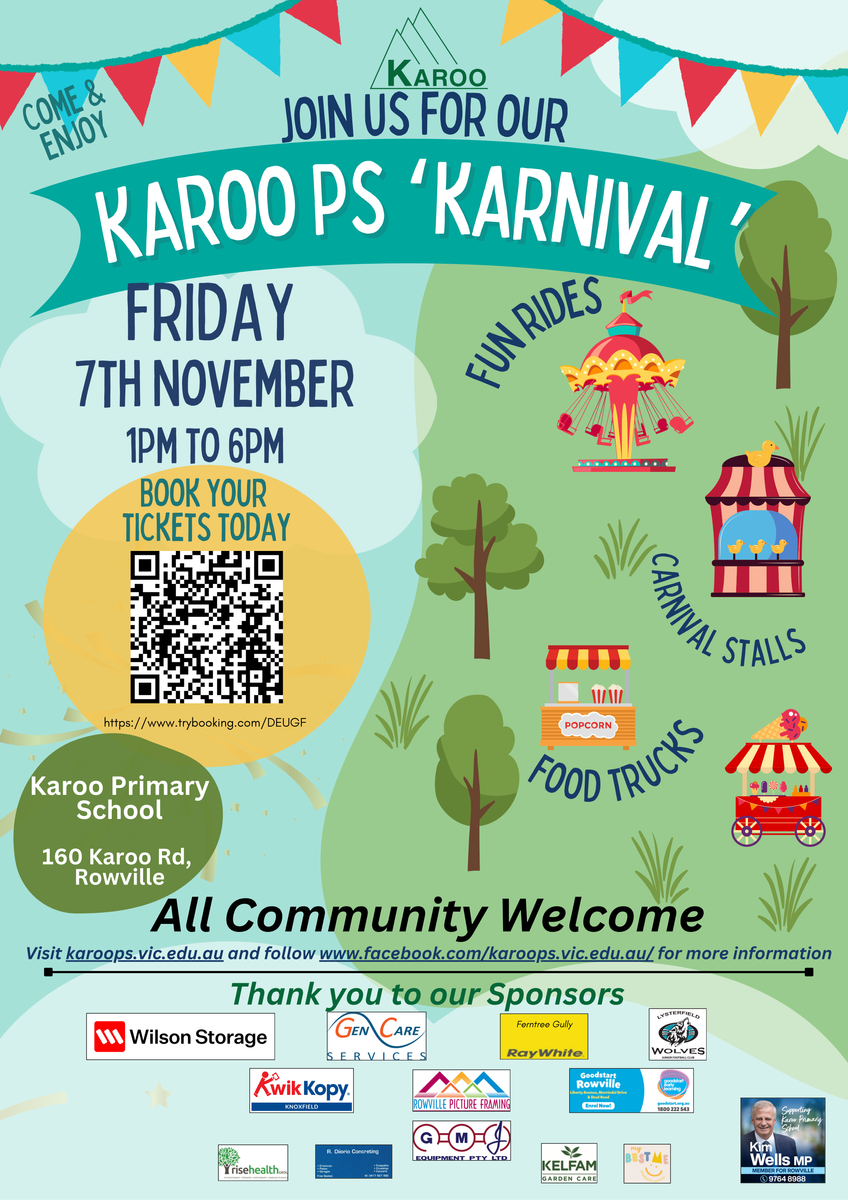 In 2025, Karoo PS’s major fundraising event will be our Karoo PS 'Karnival,' which will have amusement rides, food trucks, barista coffee, stalls, activities and performances highlighting the skills and talents of our students and community. A HUGE thank you to our sensational sponsors, who are supporting our ‘Karnival’ to be such a success!!