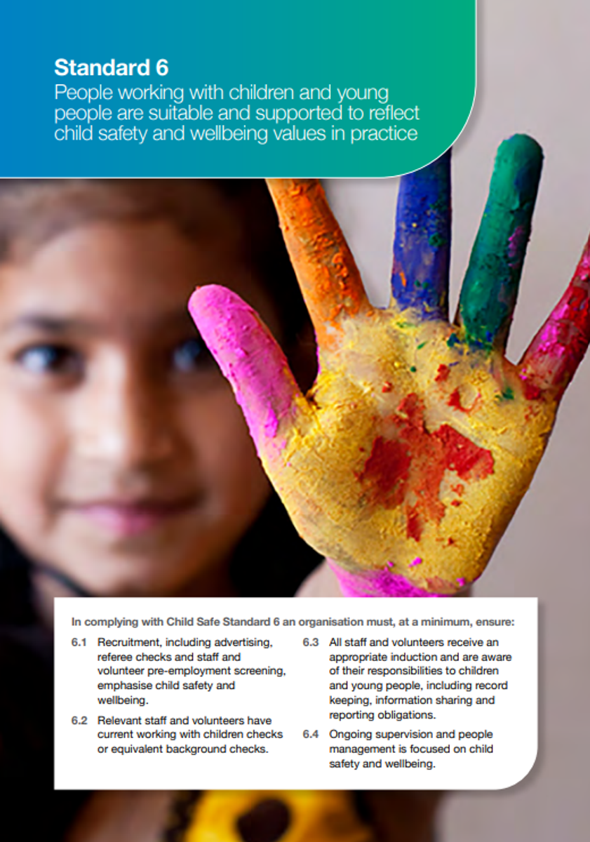 Standard 6: People working with children and young people are suitable and supported to reflect child safety and wellbeing values in practice.