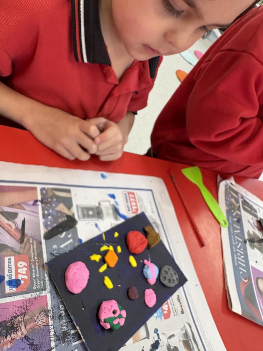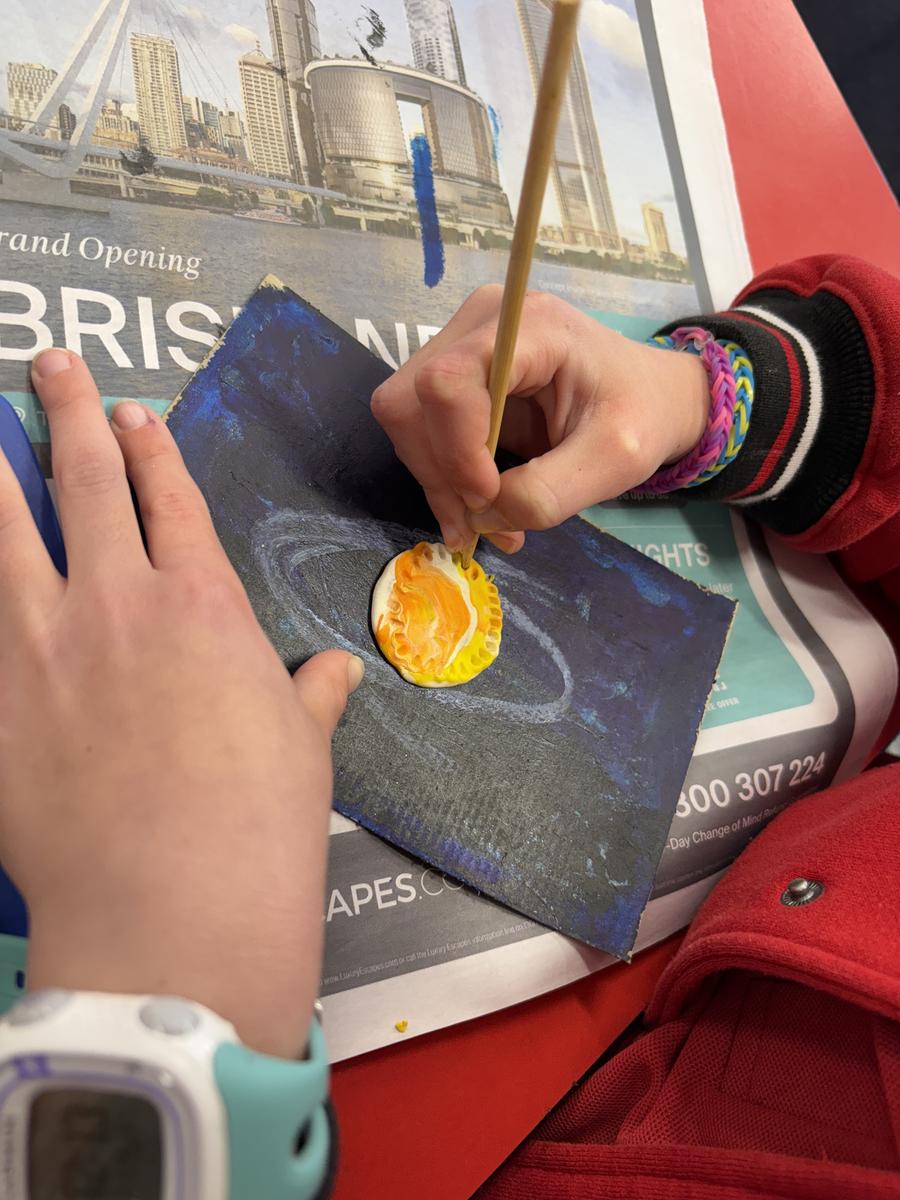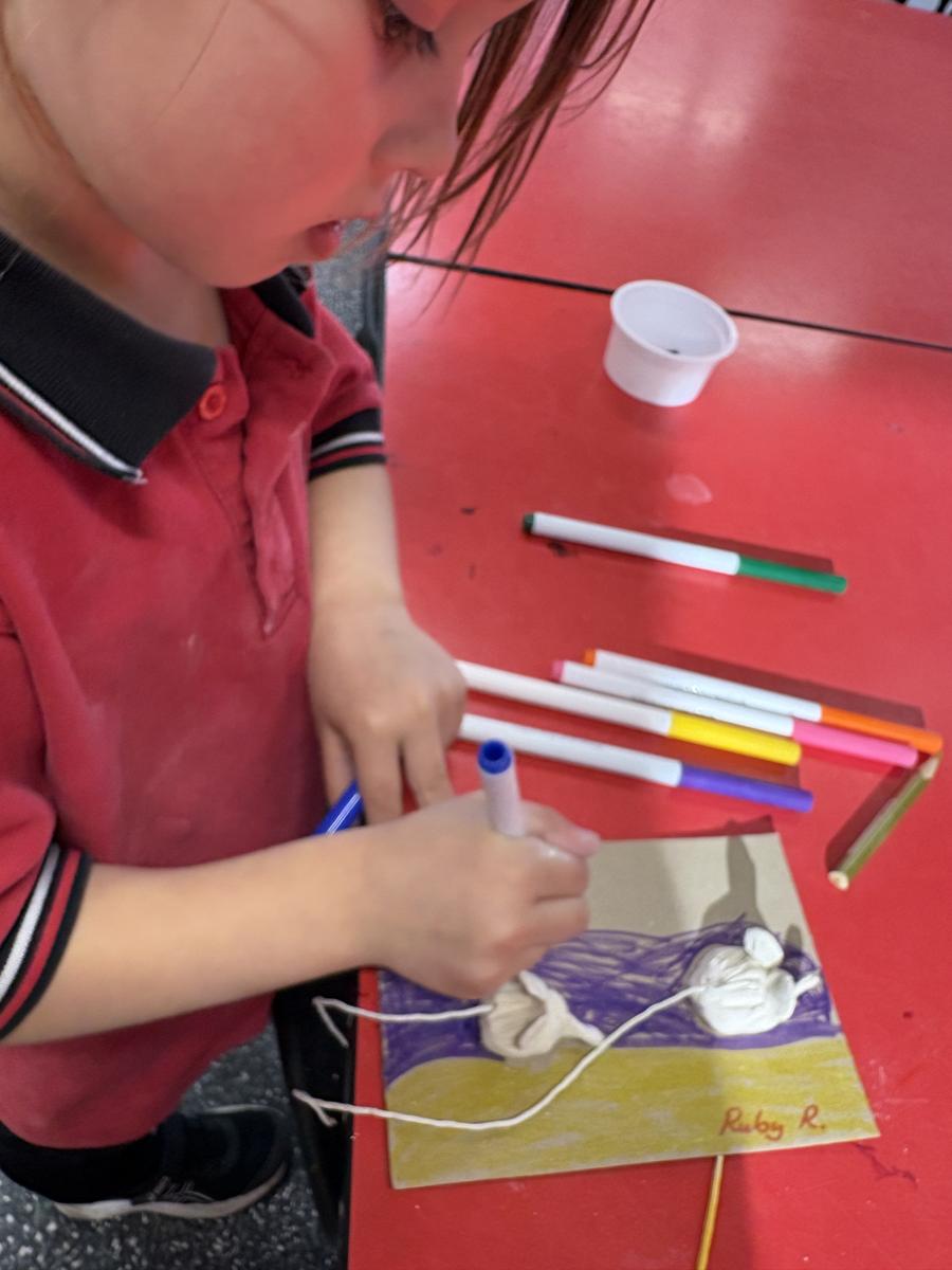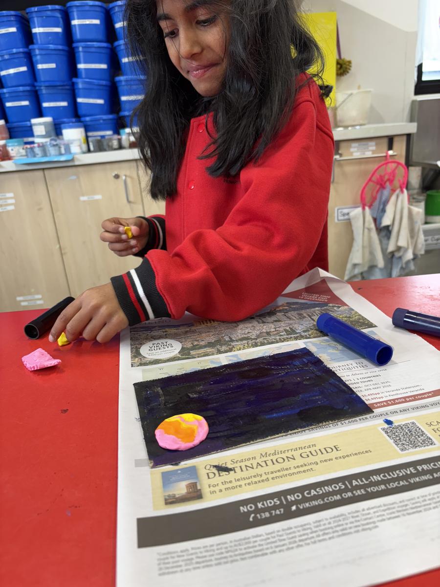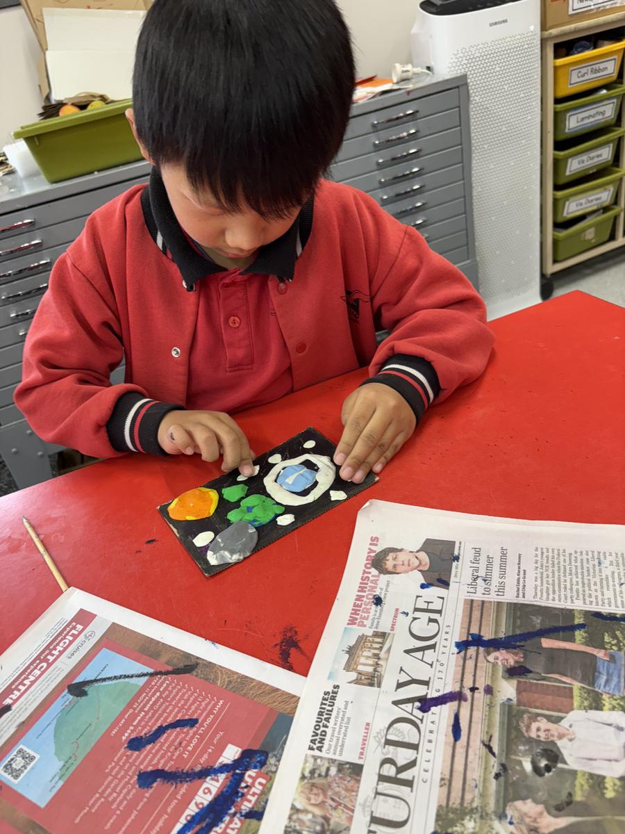 The Art Room has been buzzing with creativity! Our students have been busy stitching up their quirky Foodie Friends, while also discovering how a simple pinch pot can magically transform into a playful Blob Dog or a cheeky Koala Pot – inspired by Aussie artists Bonnie Hislop and Shelby Sherritt. Last week our wiggly worms wriggled to life with a splash of neon paint, and our Grade 2 artists took us on an out-of-this-world adventure with their colourful plasticine planets.