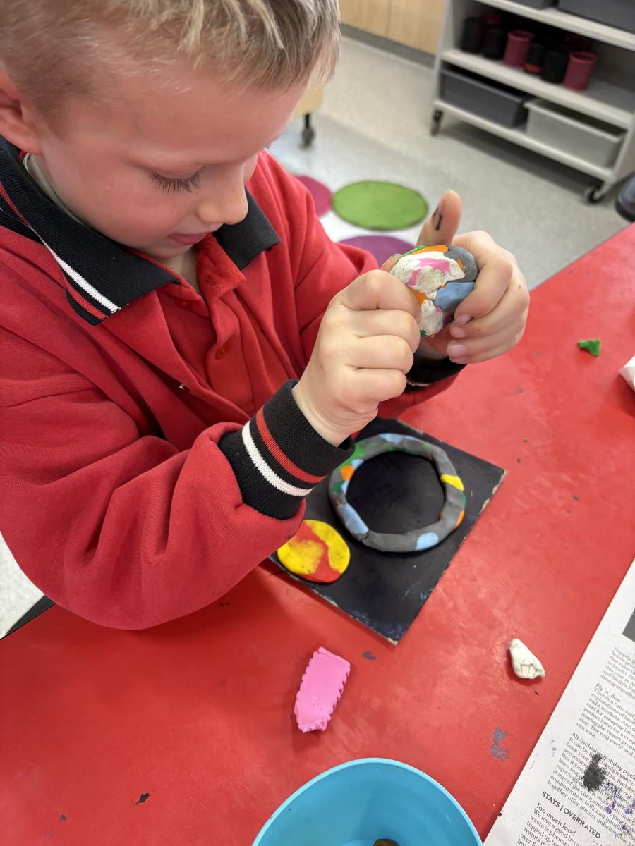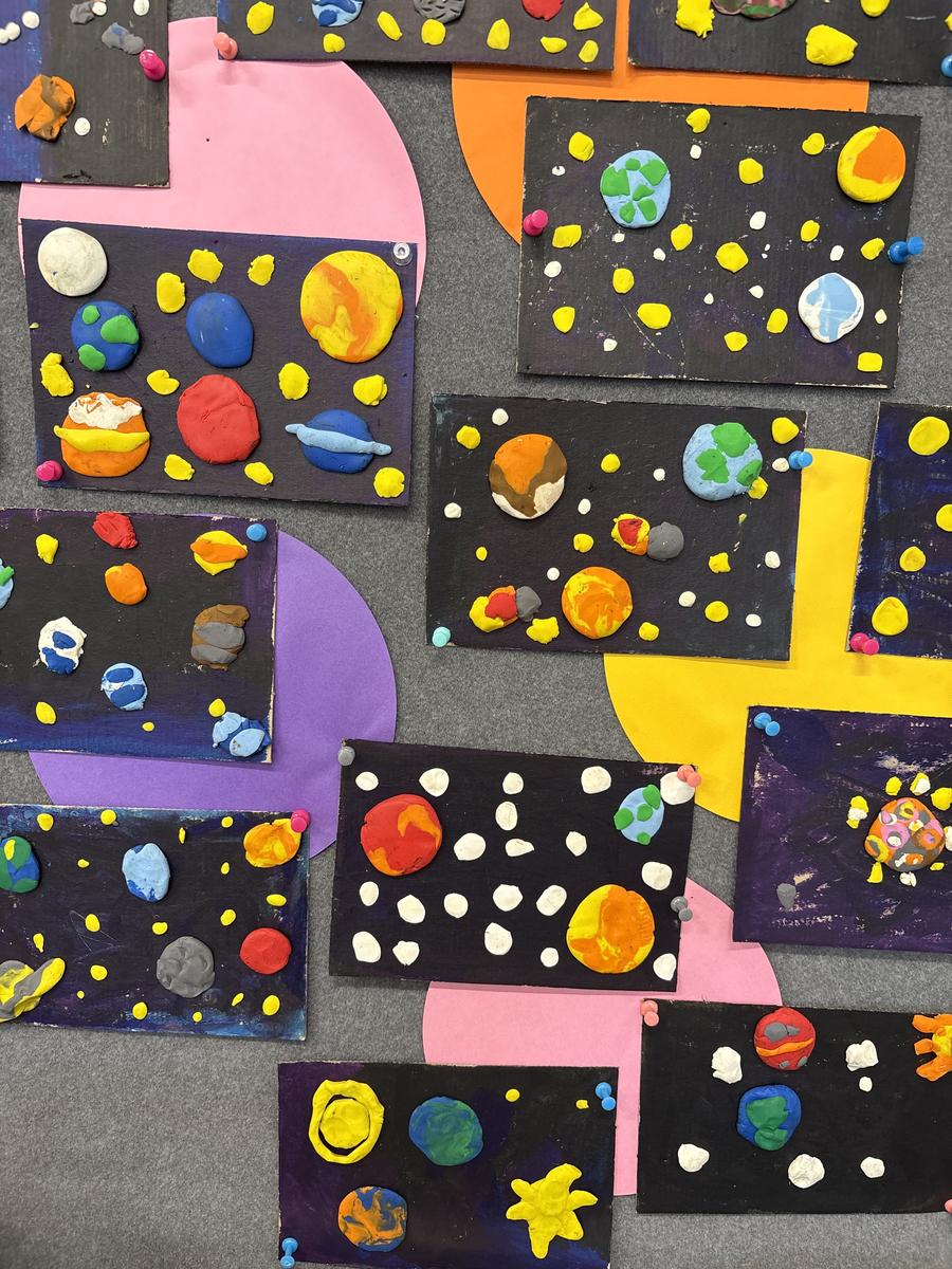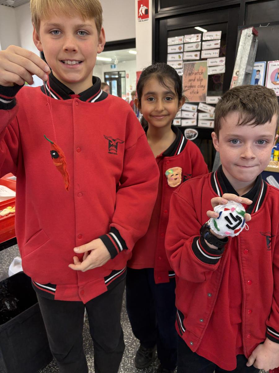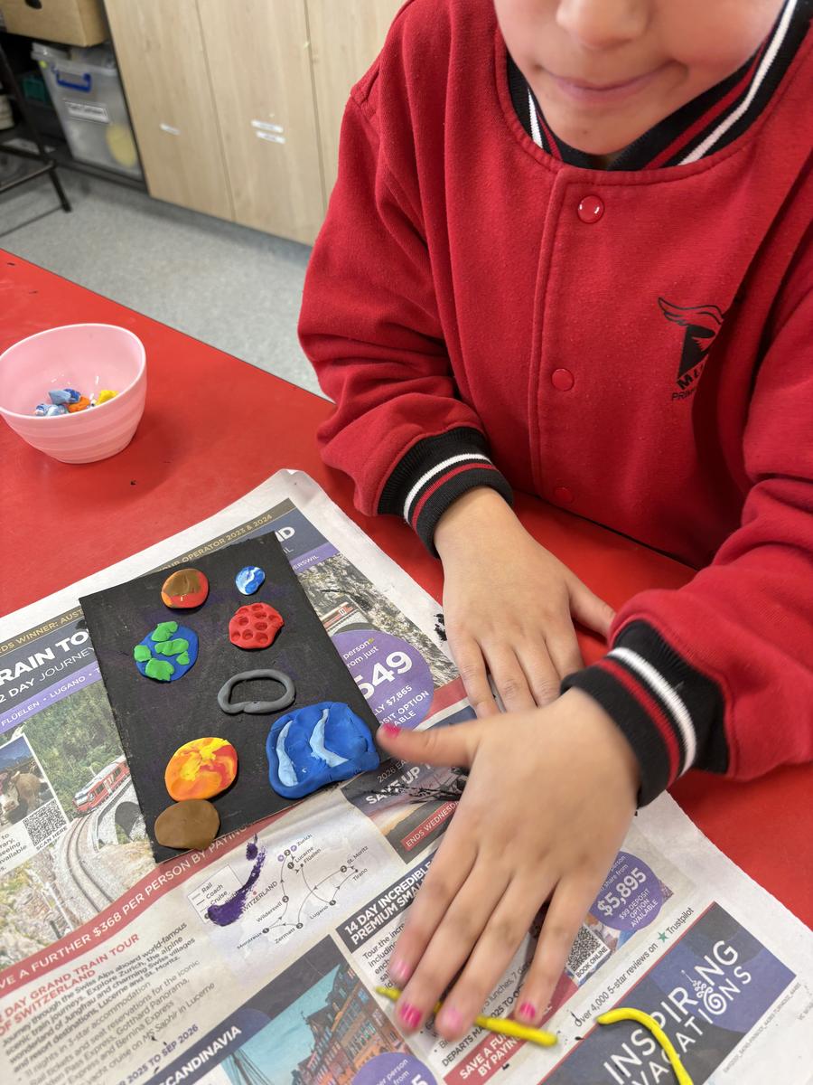 The Art Room has been buzzing with creativity! Our students have been busy stitching up their quirky Foodie Friends, while also discovering how a simple pinch pot can magically transform into a playful Blob Dog or a cheeky Koala Pot – inspired by Aussie artists Bonnie Hislop and Shelby Sherritt. Last week our wiggly worms wriggled to life with a splash of neon paint, and our Grade 2 artists took us on an out-of-this-world adventure with their colourful plasticine planets.