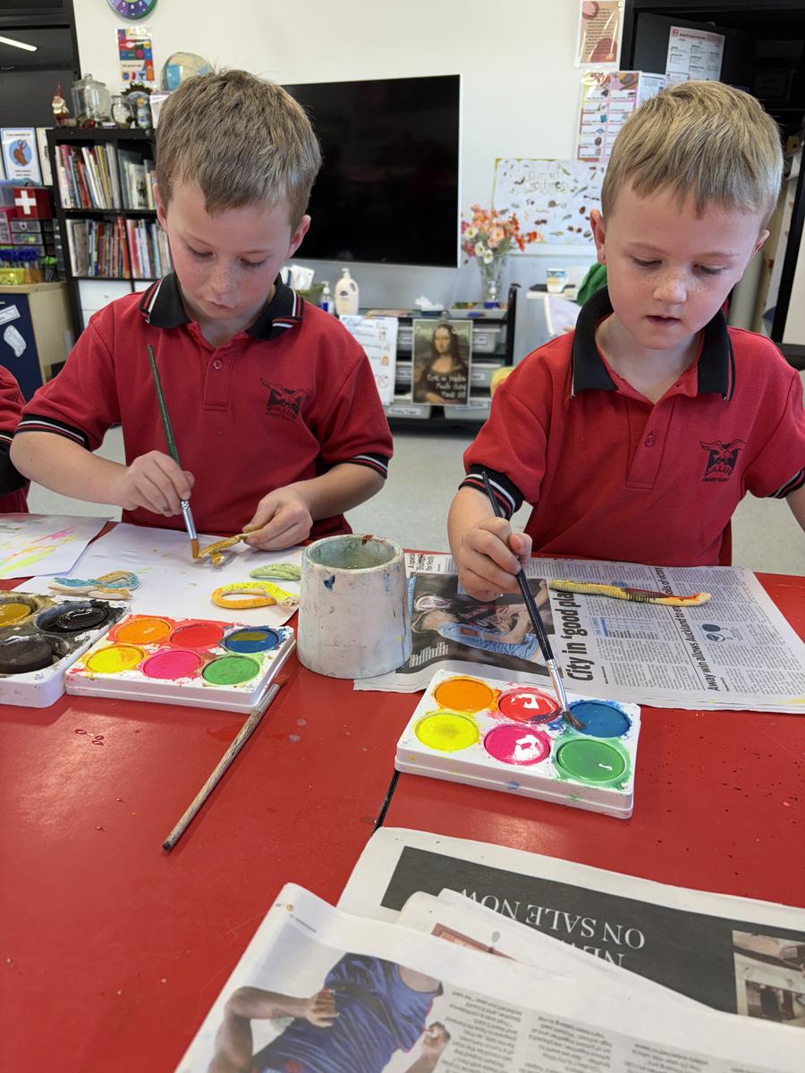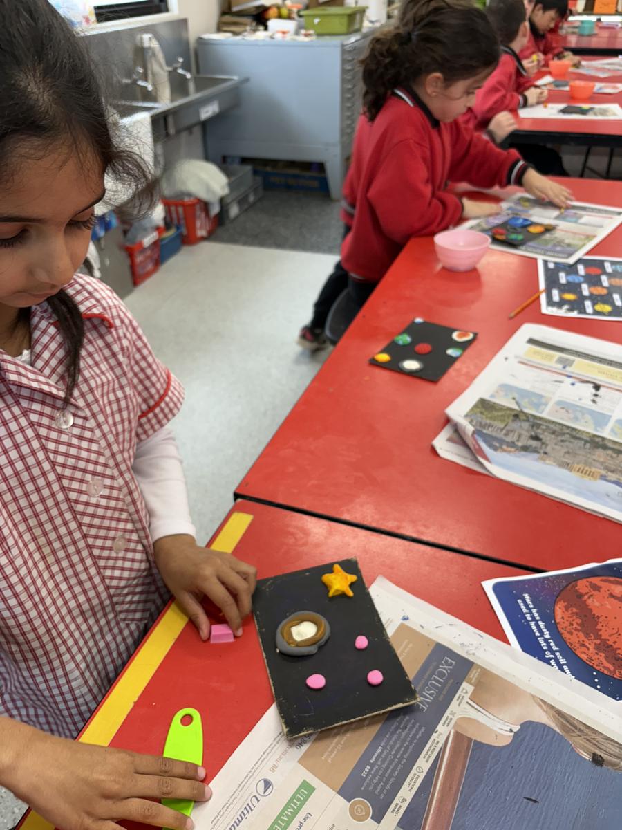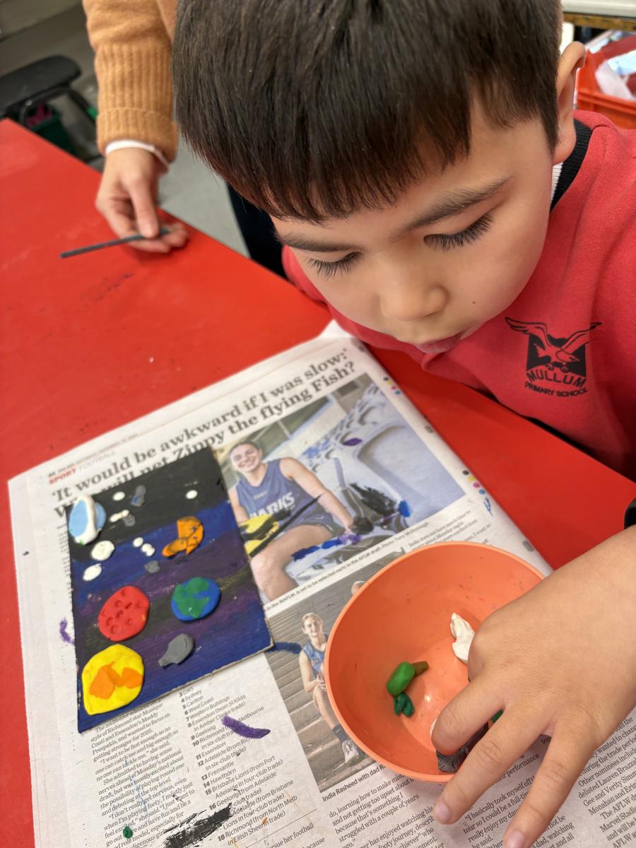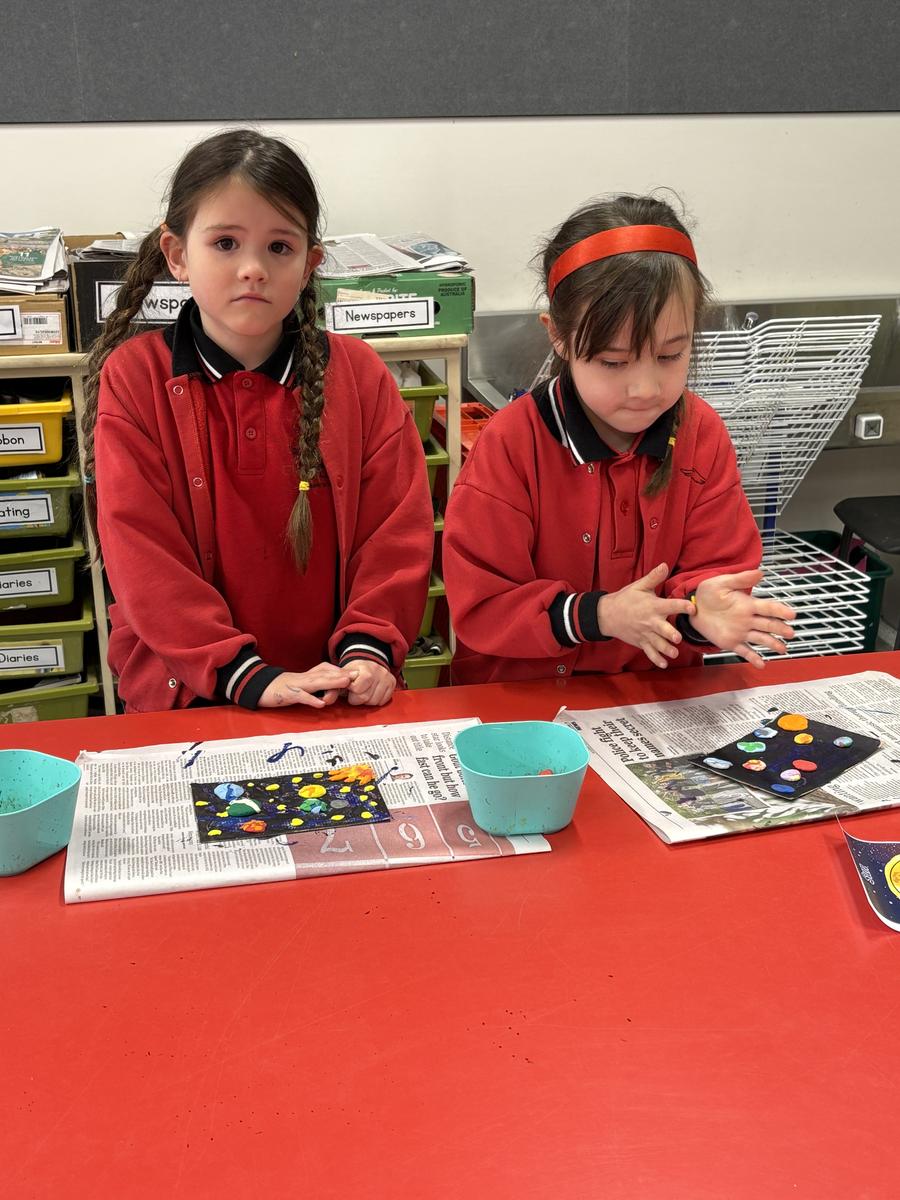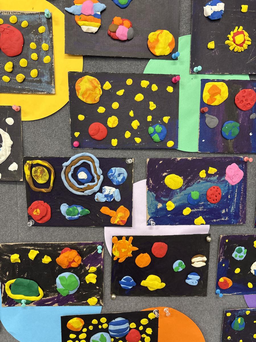 The Art Room has been buzzing with creativity! Our students have been busy stitching up their quirky Foodie Friends, while also discovering how a simple pinch pot can magically transform into a playful Blob Dog or a cheeky Koala Pot – inspired by Aussie artists Bonnie Hislop and Shelby Sherritt. Last week our wiggly worms wriggled to life with a splash of neon paint, and our Grade 2 artists took us on an out-of-this-world adventure with their colourful plasticine planets.