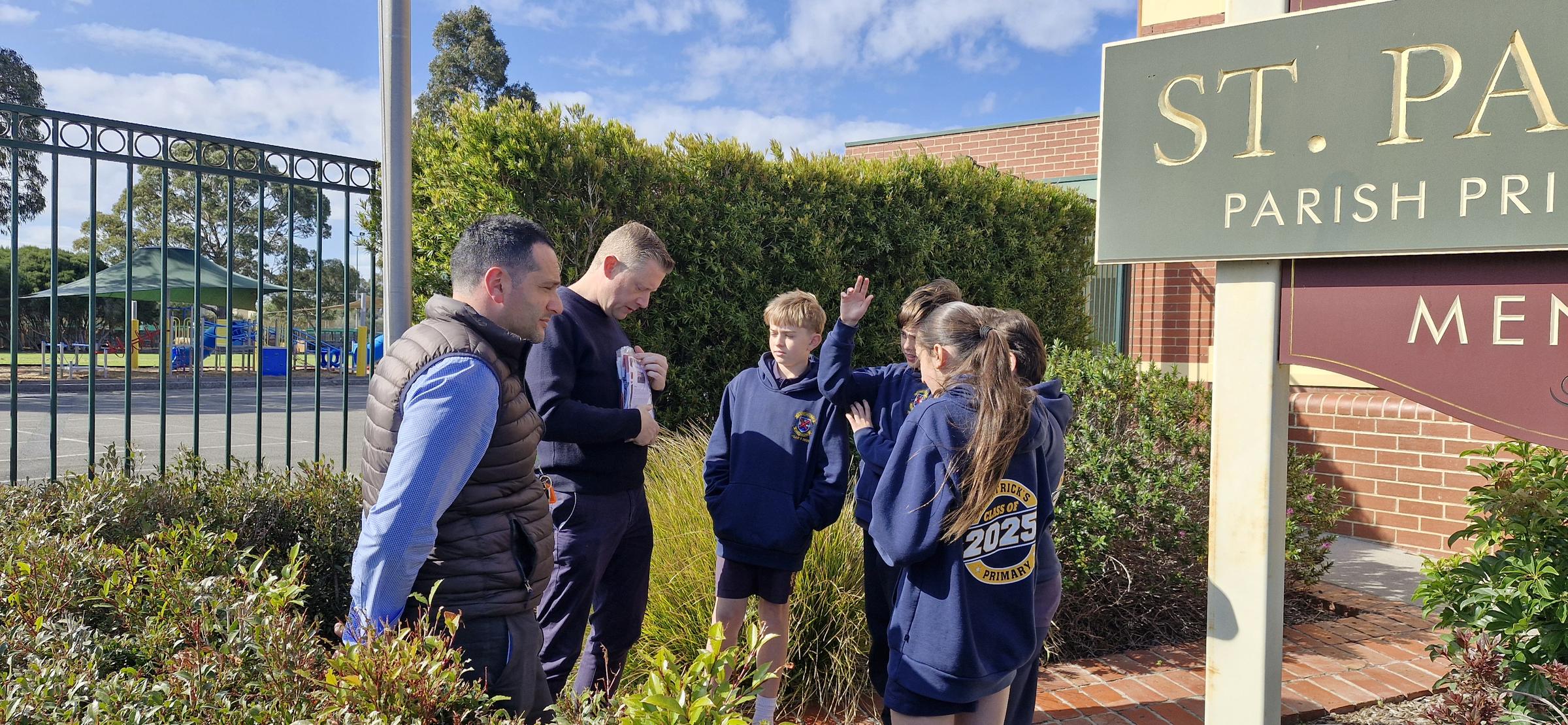 A special thank you to Brad Rowswell, our State Member, for kindly donating Australian flags to the St. Patrick’s community this morning. Our flag on the school flagpole was in need of a refresh, and we are very grateful for Brad’s generosity in helping us update it. We also extend our thanks to Mr. Speranza for organising this special visit.