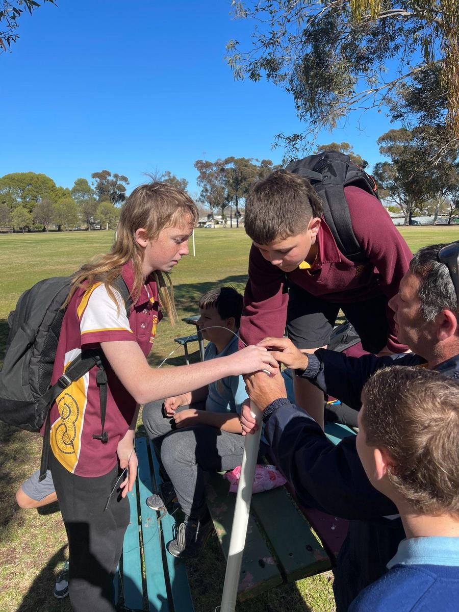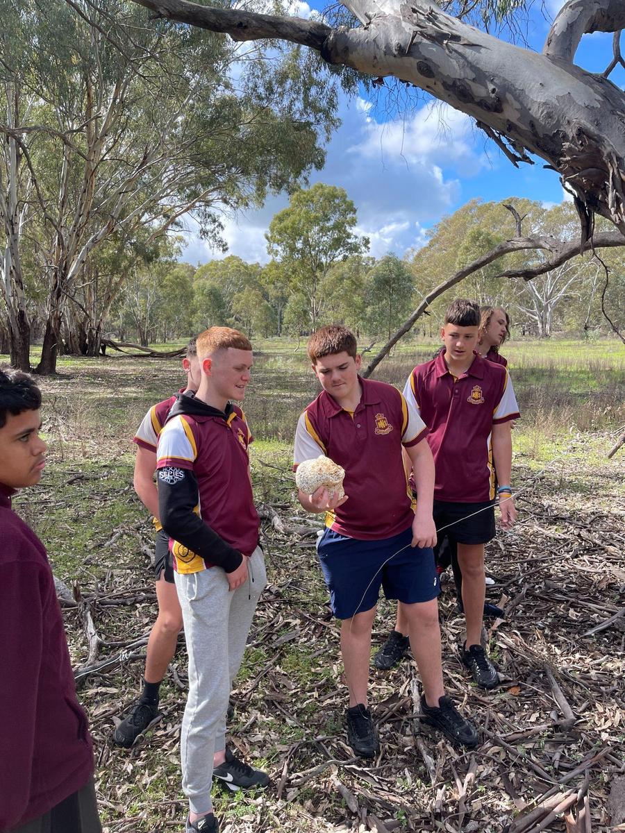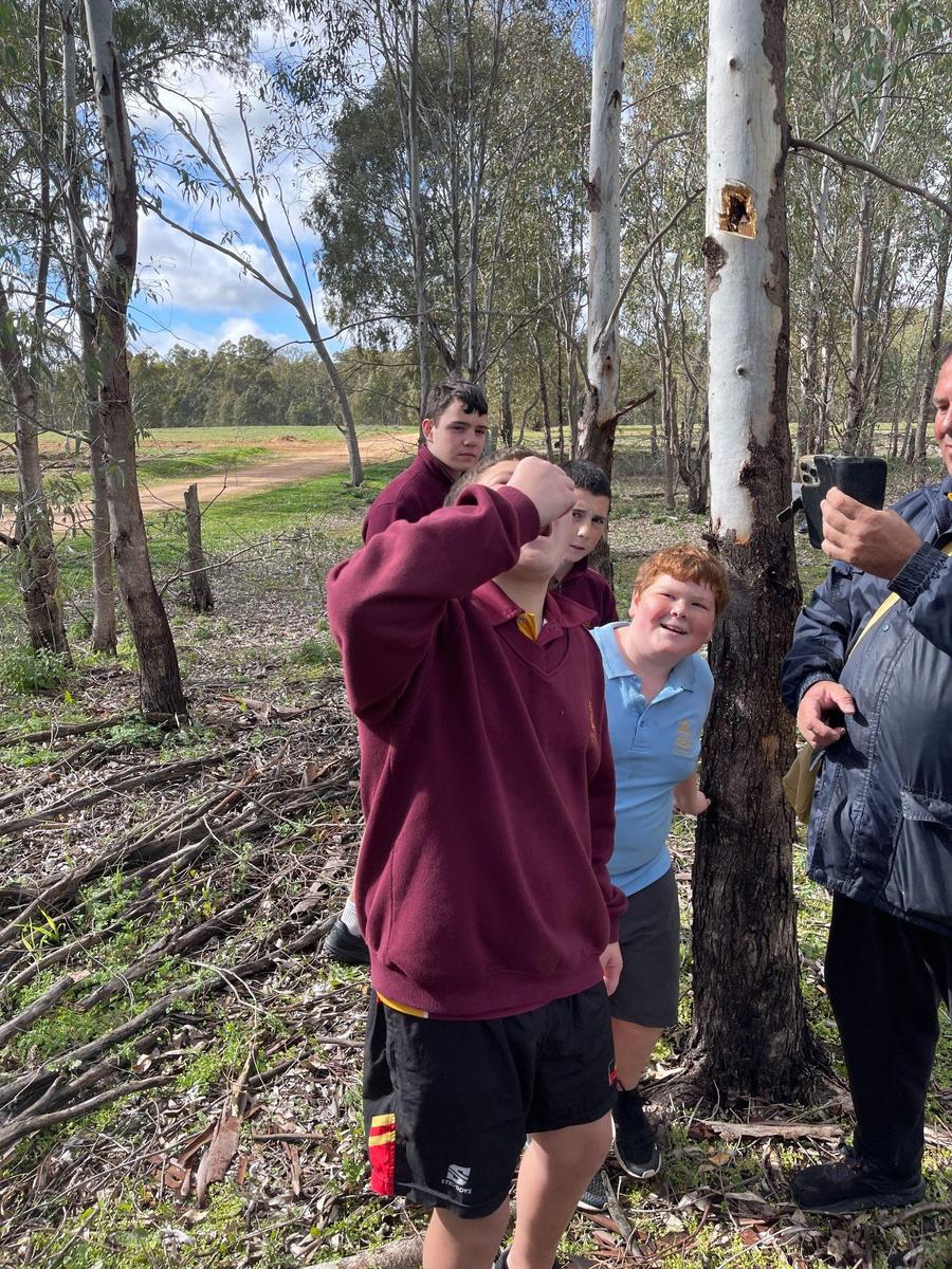 Next we headed out to the Narrandera common, eager to put our new skills to the test by searching for Bardi grubs. We carefully examined numerous holes in the ground known to be grub habitats but, unfortunately were unsuccessful in catching any this time. Undeterred we expanded our search to find Witchetty grubs, another important bush food, thankfully we were able to discover a few hidden in the trees. Curious and adventurous, a couple of the boys even tried tasting the Witchetty grubs, embracing the full experience of traditional bush food.