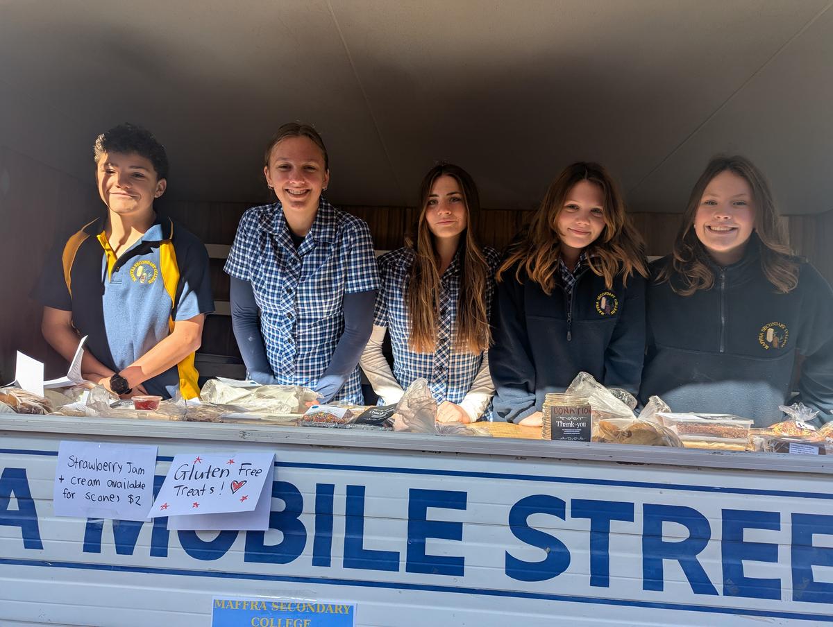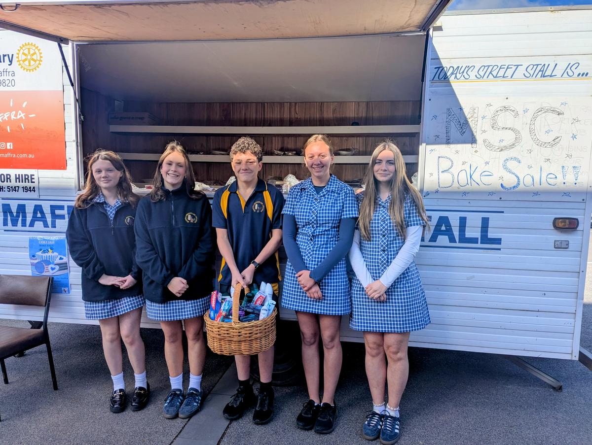 The 2025 School for Student Leadership team, who attended the Snowy River Campus in Term 1, have achieved great success with their Community Learning Project. On Friday 29th August, they held a bake sale at the Maffra Rotary van outside the Maffra Post Office, raising an impressive $750. The funds will be used to purchase hygiene products for donation to the Maffra Neighbourhood House. Thank you to everyone who supported the Snowy Team with donations of money or baked goods, or by purchasing items on the day.