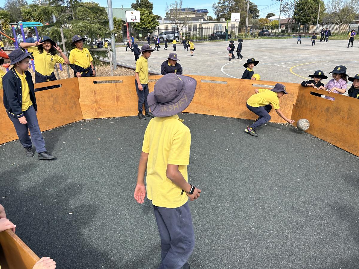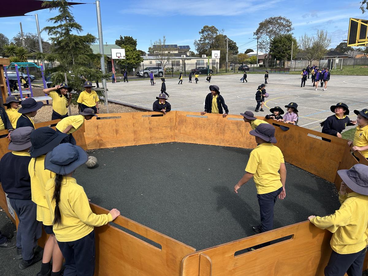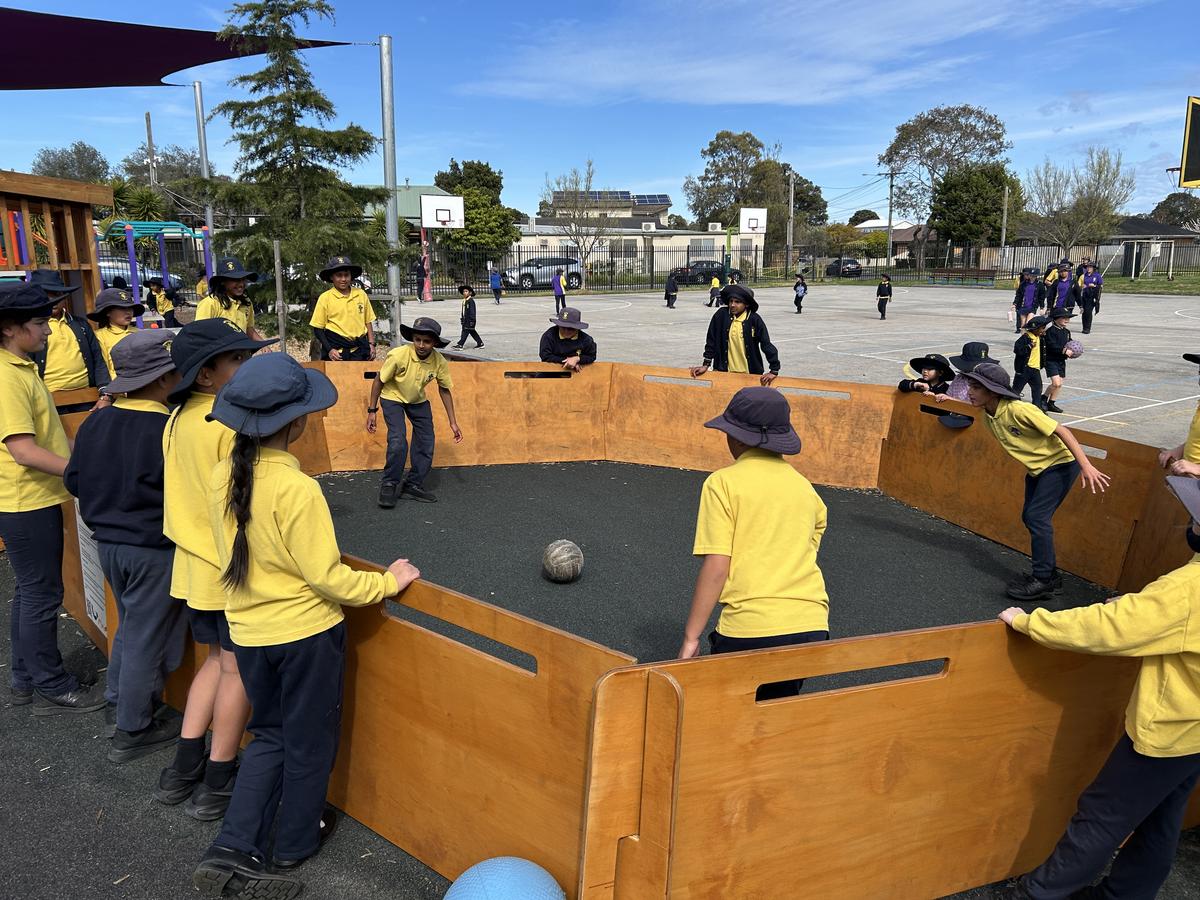 When we got back from camp, everyone was talking about how fun it was to play and how they wished that it could come back. So we knew what we had to do and talked to Mrs Dunstone. We went to her office daily, making rosters, posters, and rules. It took lots of thinking, trying to work out the placement of the pit. Eventually, we settled on the pit being placed in front of the Junior Playground. The first day that we released the pit, almost every Year 6 was in the pit collectively chanting GA! GA! BALL!