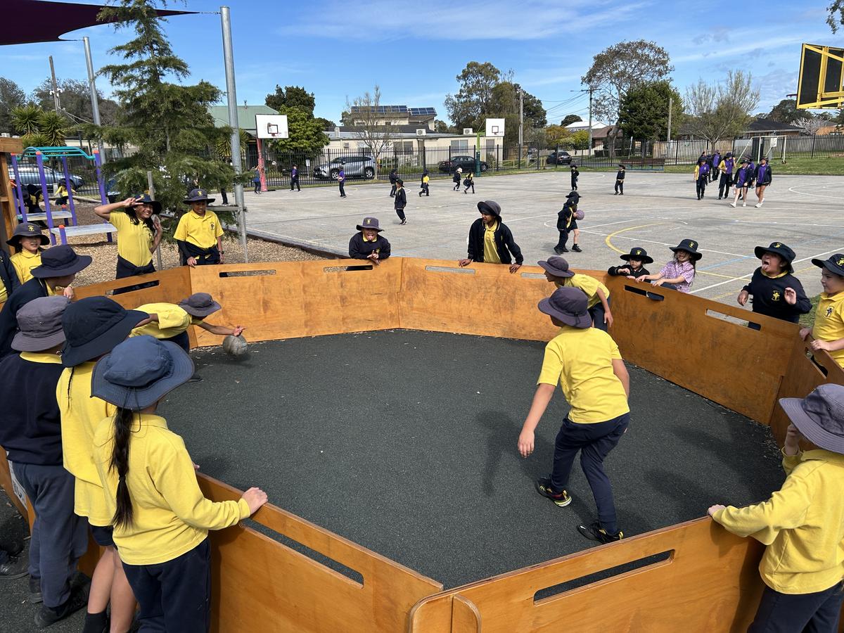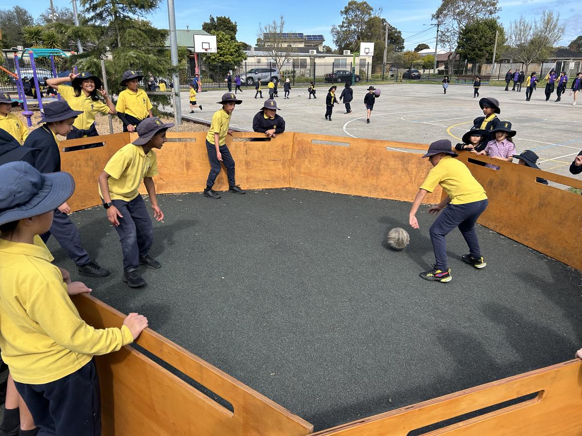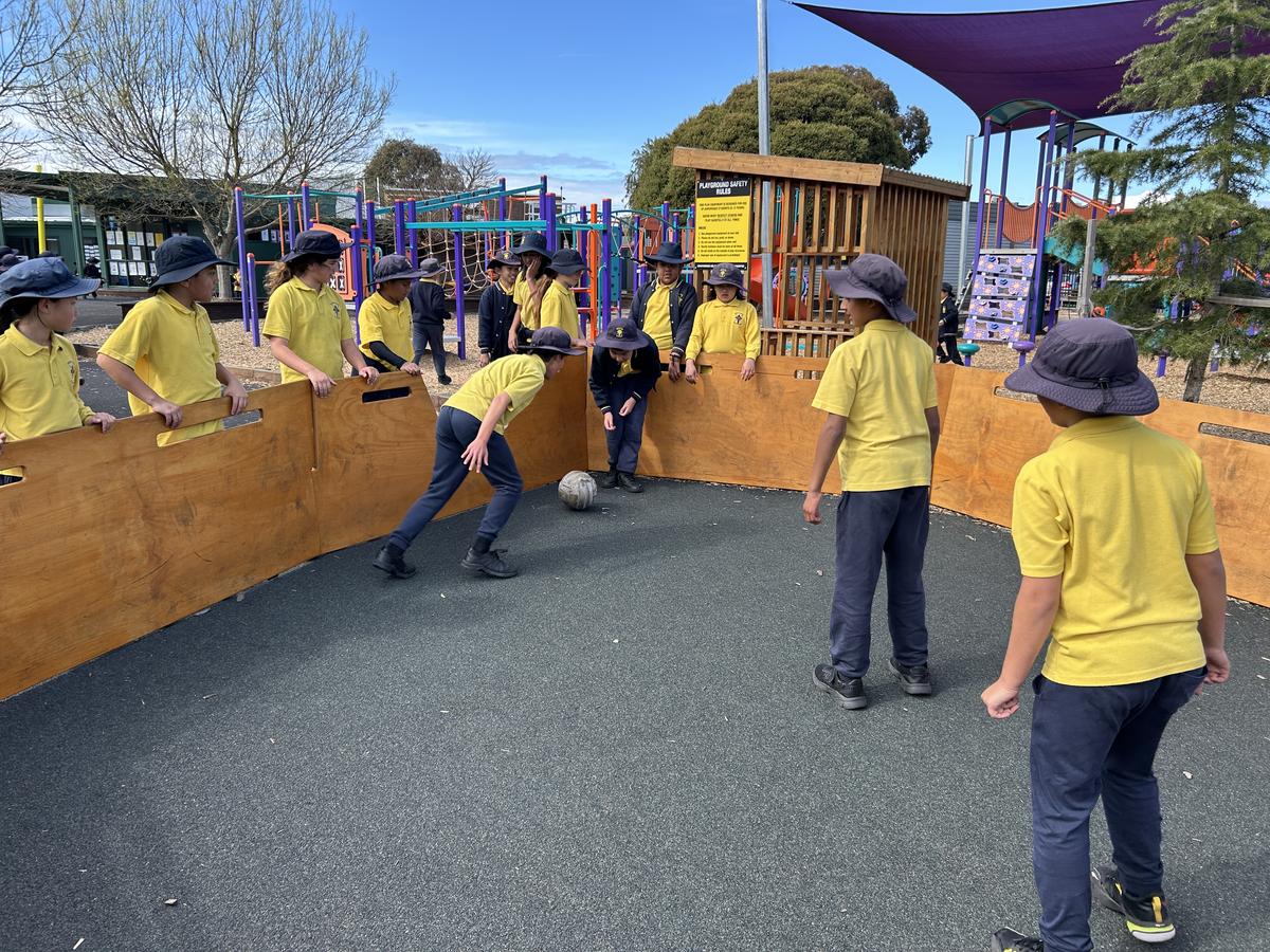When we got back from camp, everyone was talking about how fun it was to play and how they wished that it could come back. So we knew what we had to do and talked to Mrs Dunstone. We went to her office daily, making rosters, posters, and rules. It took lots of thinking, trying to work out the placement of the pit. Eventually, we settled on the pit being placed in front of the Junior Playground. The first day that we released the pit, almost every Year 6 was in the pit collectively chanting GA! GA! BALL!