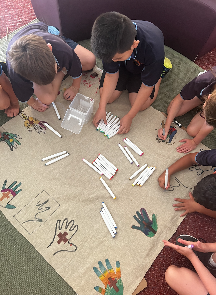 We have been exploring the idea of faith and what faith means to us. Learners used their knowledge of the different symbols and words we can connect with faith to create a hand print that encompasses their faith.