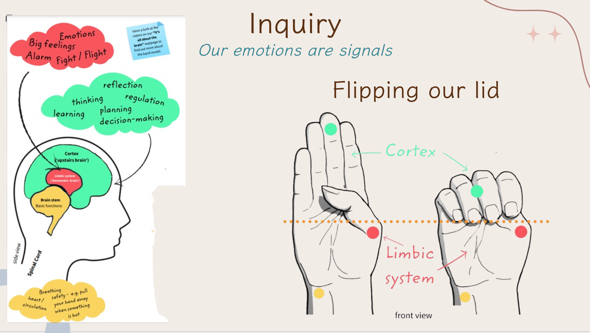 We explored our brain and the parts that are responsible for our emotions and our decision making. Learners investigated that when we experience uncomfortable emotions we can temporarily lose control of our actions, which is called 'flipping the lid'.
