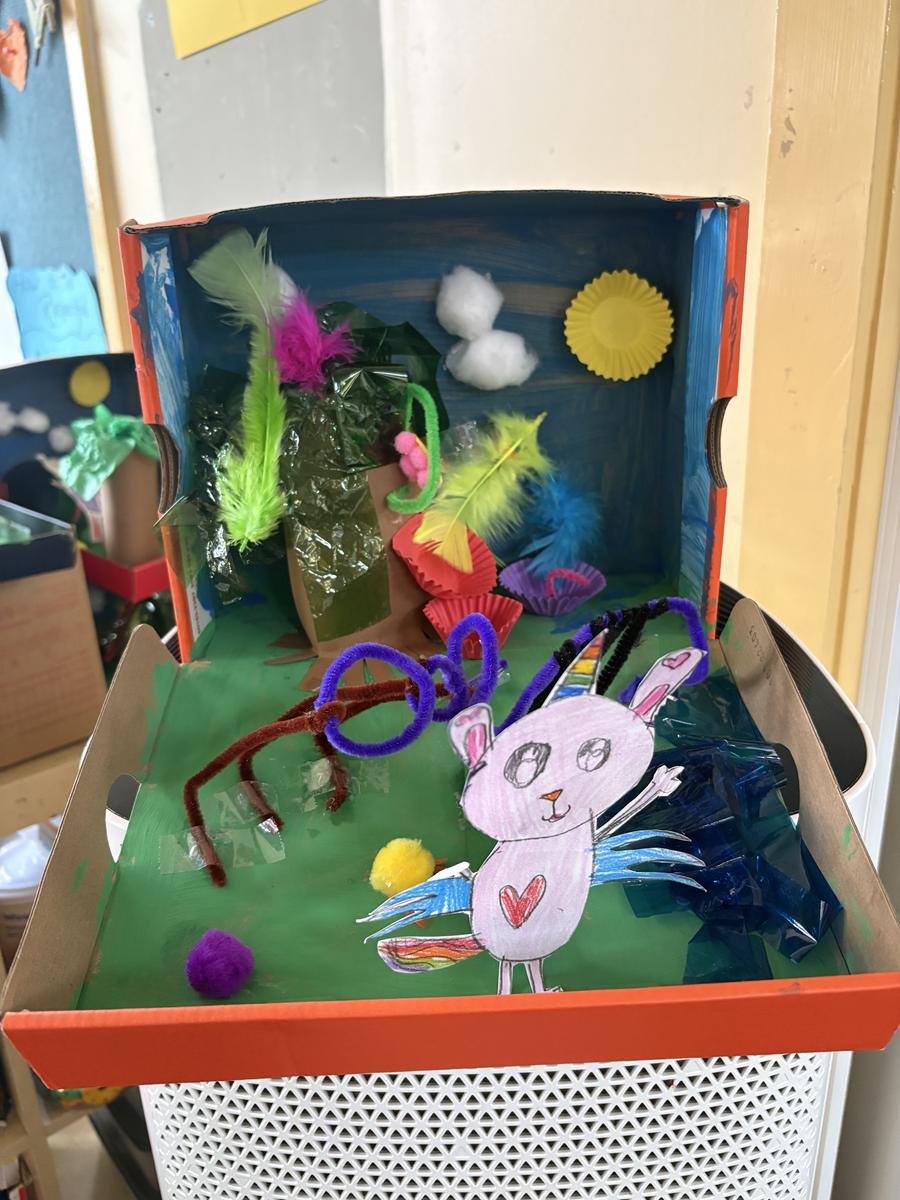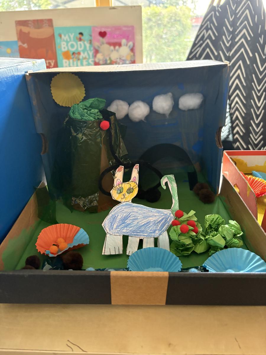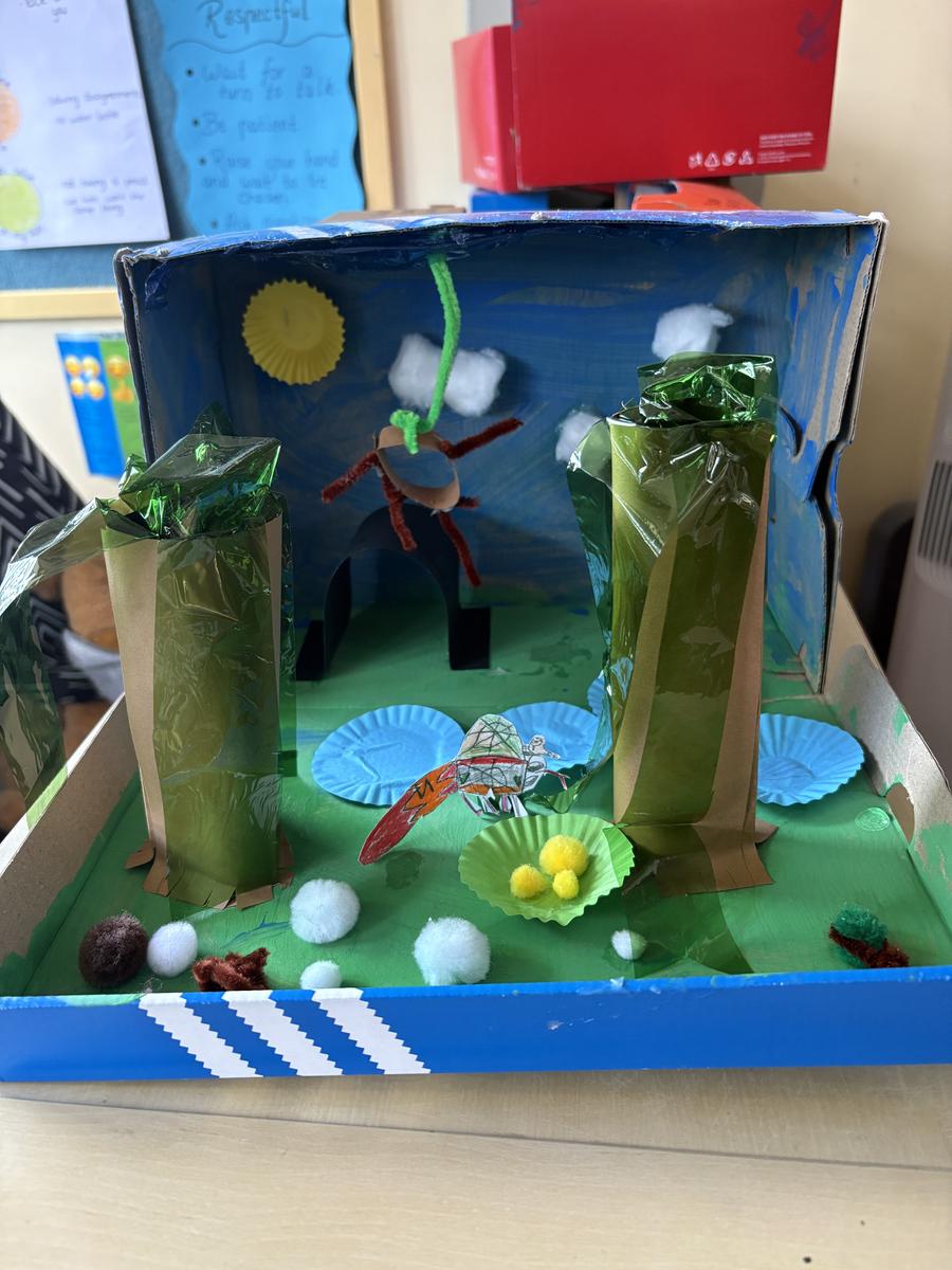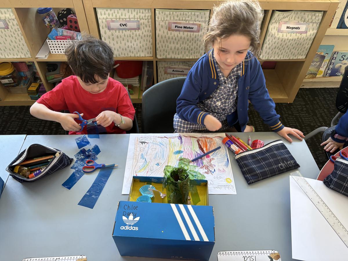 In Mathematics, students explored addition, subtraction, place value, ordinal numbers, and 3D shapes. They applied this knowledge in our STEAM project, where they designed a habitat for an imaginary animal. Each habitat had to include 20 objects, with students creating a matching sum to prove it. The use of different 3D shapes made their creations both realistic and imaginative.