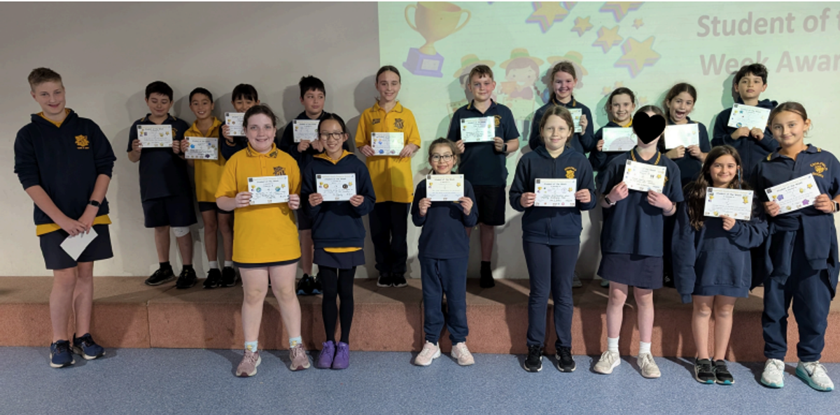 Emma C (Prep A), Raphael V (Prep A), Franki D (Prep B), Chloe I (Prep B), Zoe B (1A), Aviv K (1A) Cora M (1B), Levi R (1B), Sam H (1C), Elianna R (1C), Harvey B (2B), Olivia C (2A), Teddy L (2B), Zara D (2C), Emily W (2D), Zac B (2D