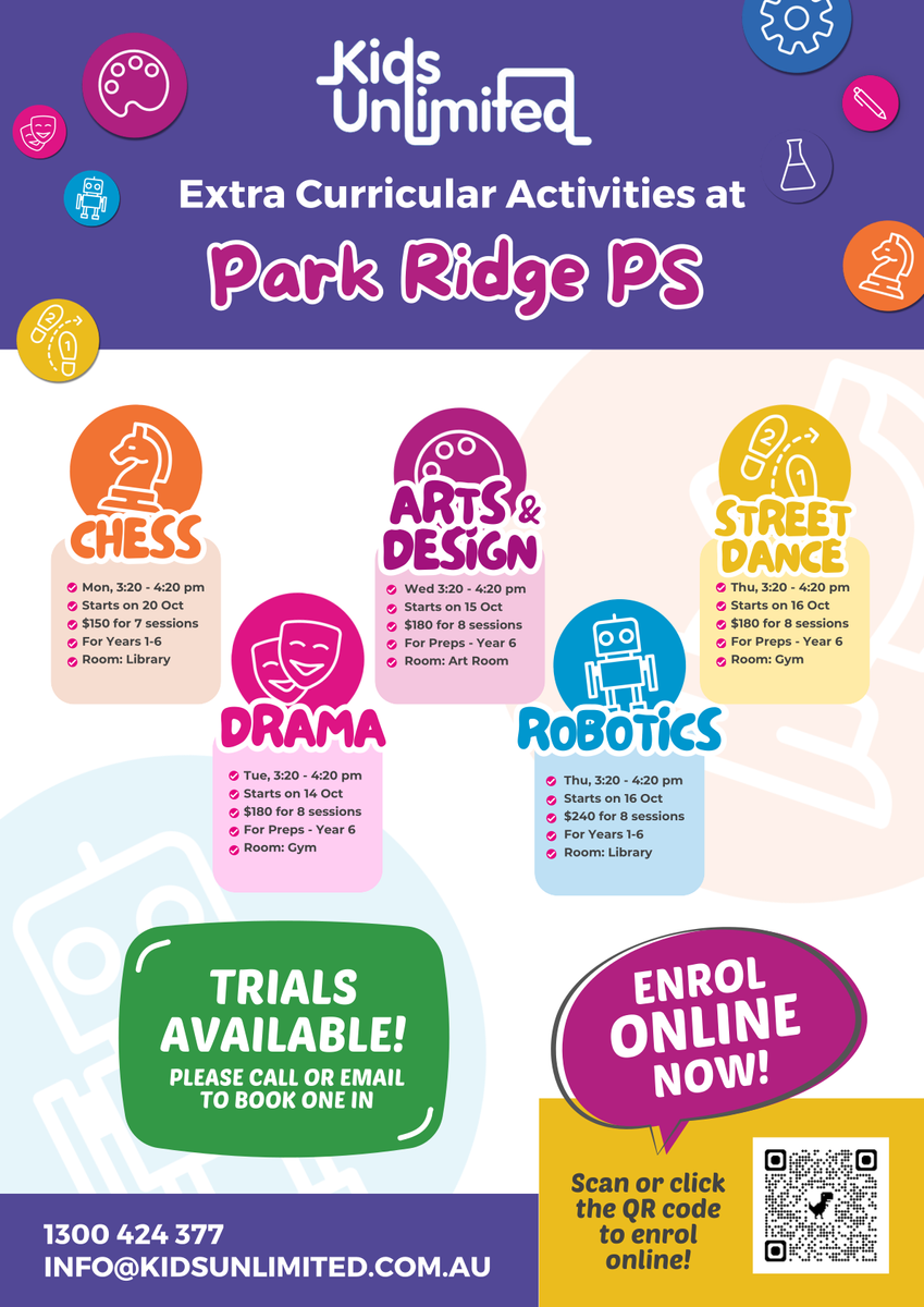 We thank the following people for advertising in our School Newsletter, however Park Ridge Primary School does not endorse their products or services.
