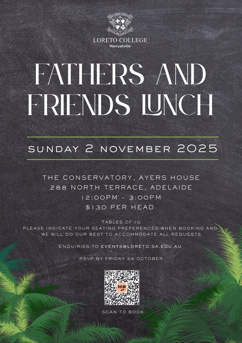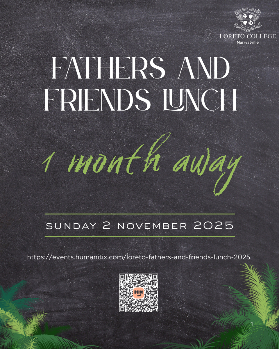 We are excited to invite you to our Fathers & Friends Lunch, taking place on Sunday, 2 November. This event provides dads and friends of the college community the opportunity to come together, connect, and enjoy the spirit of Loreto.
