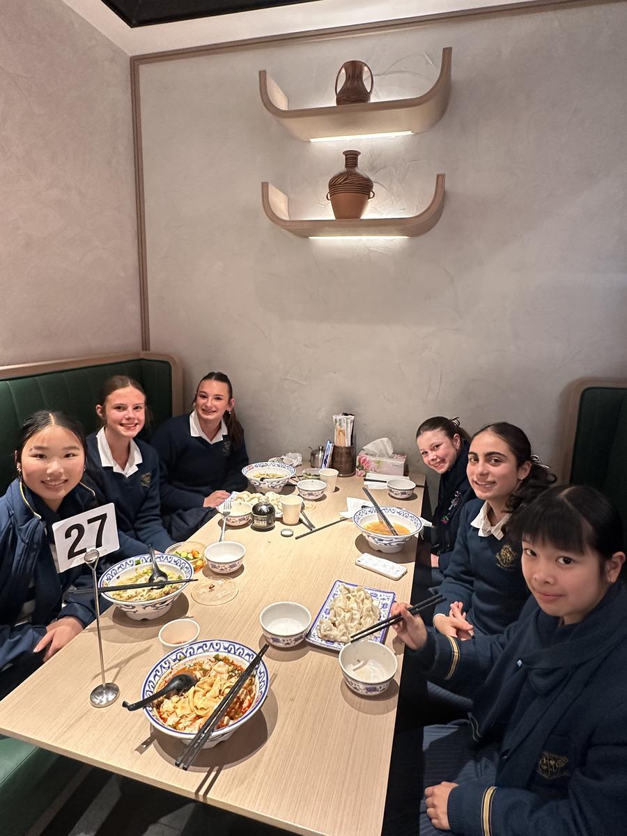 Last Wednesday, our Year 8 Chinese students took part in an enriching cultural excursion to Chinatown. Building on their recent unit of study on food and drinks, students were able to connect classroom learning with real-life experiences. They enjoyed authentic handmade noodles and dumplings at the 1915 Lanzhou Noodle Bar before venturing into an Asian supermarket, where they explored a wide variety of Chinese groceries. The excursion not only deepened their understanding of Chinese cuisine but also gave them valuable cultural insights in an engaging and memorable way.