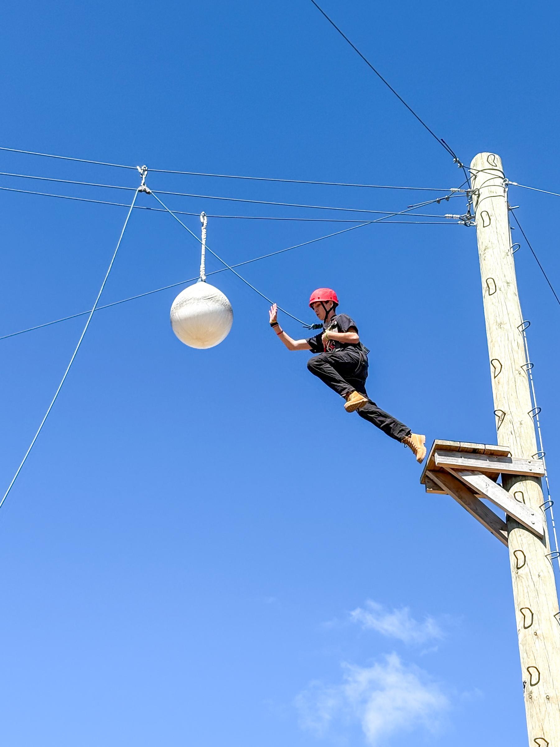 Camp was really fun, not just because of the activities, but because of the experiences outside and inside them. At the start of camp, I told myself I would do all the hard activities, go beyond my comfort zone, and not let fears get in my way. So I did. I went first on the giant swing and went to the top. I did the vertical challenge with a blindfold and decided to do leap of faith but the leap was hard. I grinned all the way climbing up, but then I looked down. It was like looking through a straw, long and narrow. Everyone looked like ants and I didn't want to jump but it was the only way down so I leaped… again and again.