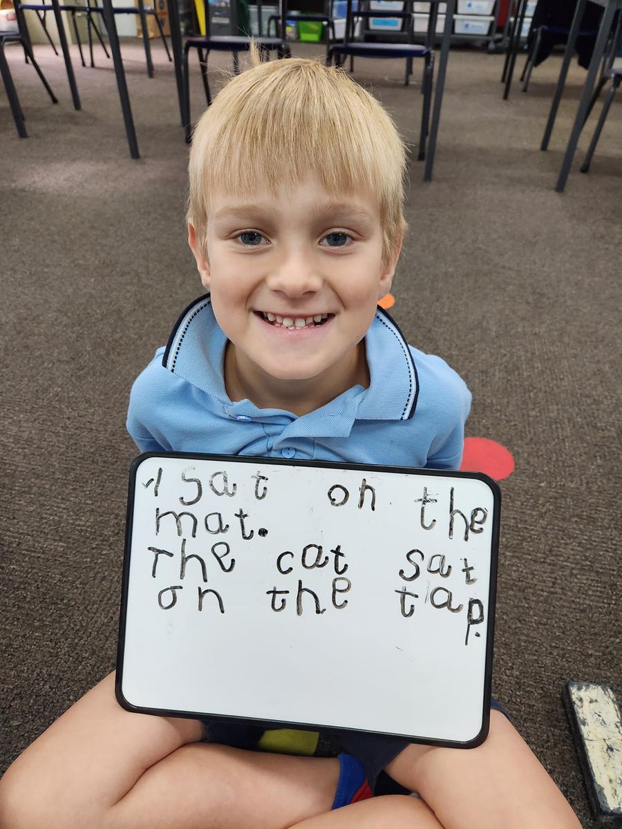 Prep students have been learning the sounds for the letters 'a i m s t n o p'. They have been building words from these letters and are learning how to correctly form the letters to write them. We have also been learning to write and read simples sentences.
