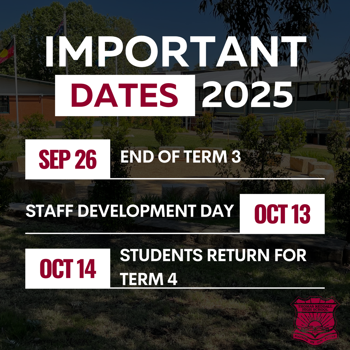 Term 3 has been a wonderful and productive term at Thomas Reddall High School. From NAIDOC Week, Wear It Purple Day, R U OK? Day, TRED Day, and our memorable Year 12 Graduation, our school community has come together to create many meaningful and successful events. Behind the scenes, our staff have worked tirelessly to ensure that each school day runs smoothly and that our students are supported in every way.