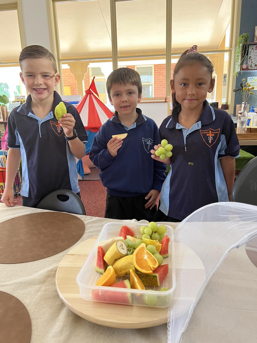 Something we are trialling at the moment is having a fruit platter in each of the classrooms to graze on throughout the morning session. This has occurred the last two Wednesdays and has been a hit. It's a great opportunity for the students to try new fruits/vegetables, learn manners in waiting turns and not being greedy and hygiene about handling food. Each Wednesday morning before school we will have a basket on display near the staffroom that students can put their piece of fruit/vegetable in that will be shared amongst the classes. This activity will also be used for so many teaching points like graphing favourite foods, writing pieces etc etc - we can't wait to see all the benefits this will offer.