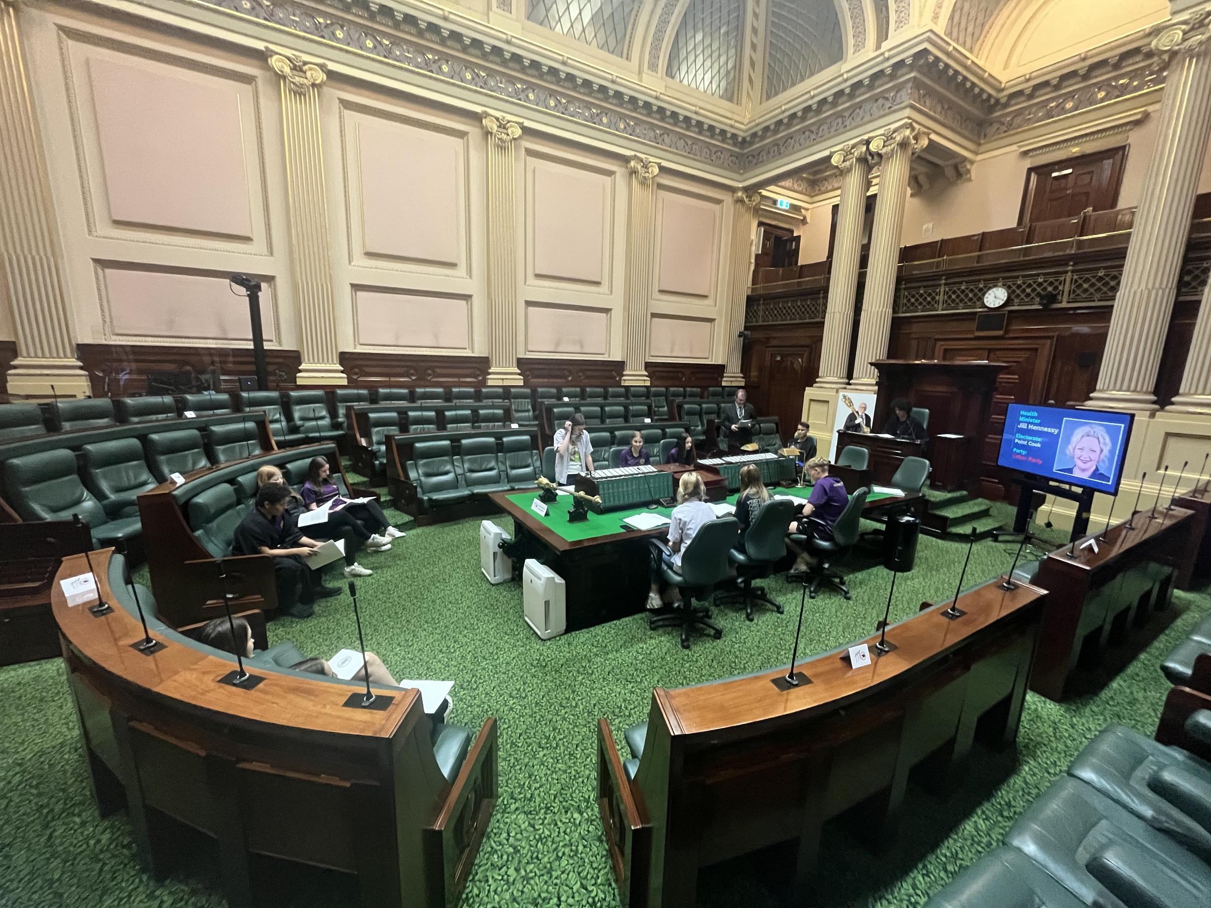 Our Year 11 Legal Studies classes recently visited the Parliament of Victoria and took part in a role play about passing a bill into law. Students experienced the law-making process firsthand, taking on the roles of Speaker, Clerk, Serjeant-at-Arms, Premier, Leader of the Opposition and other members of Parliament, using the Voluntary Assisted Dying bill as their case study.