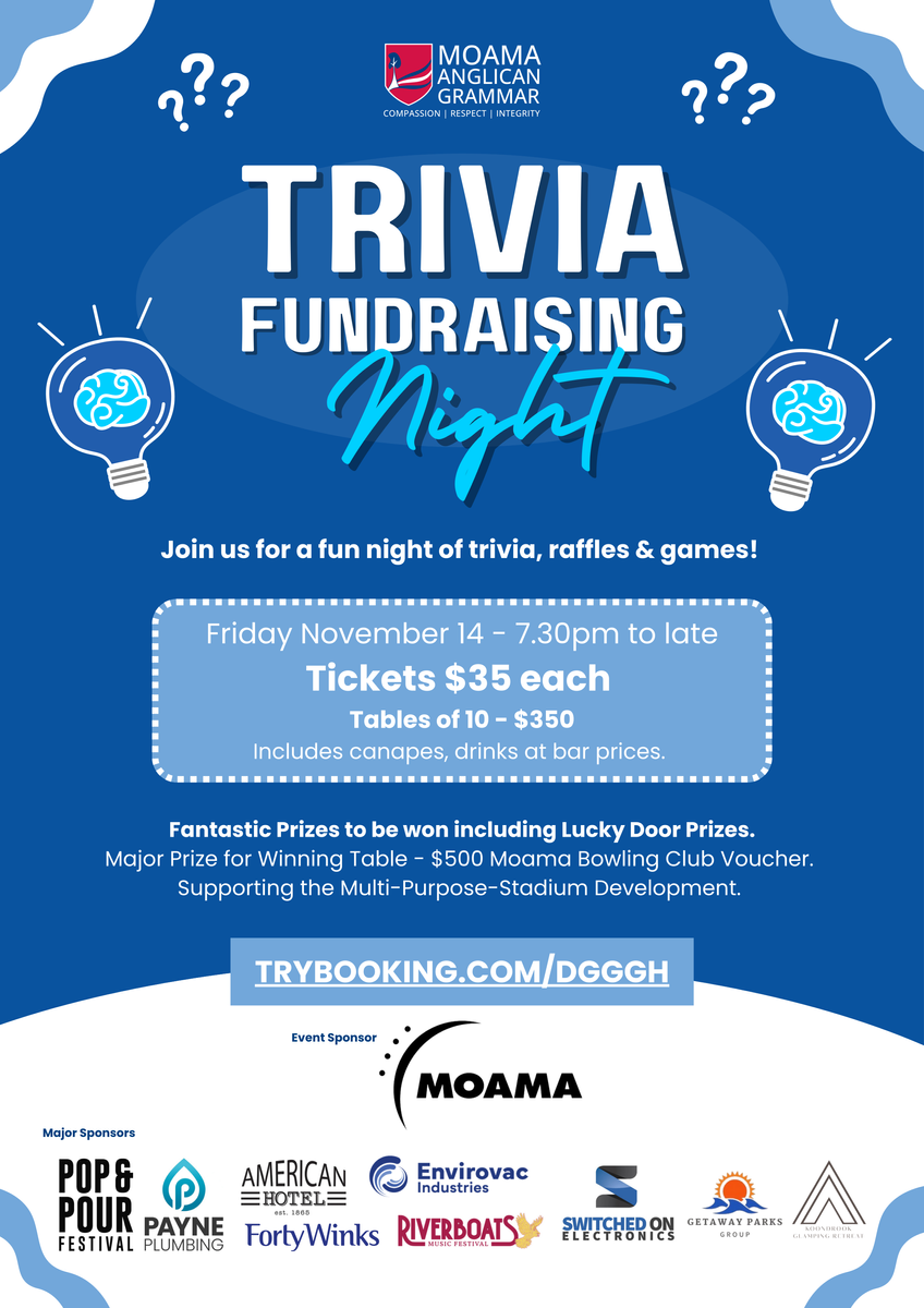We are excited to announce our upcoming Trivia Fundraising Night, which will be held at Moama Bowling Club on Friday 14 November commencing at 7.30pm.