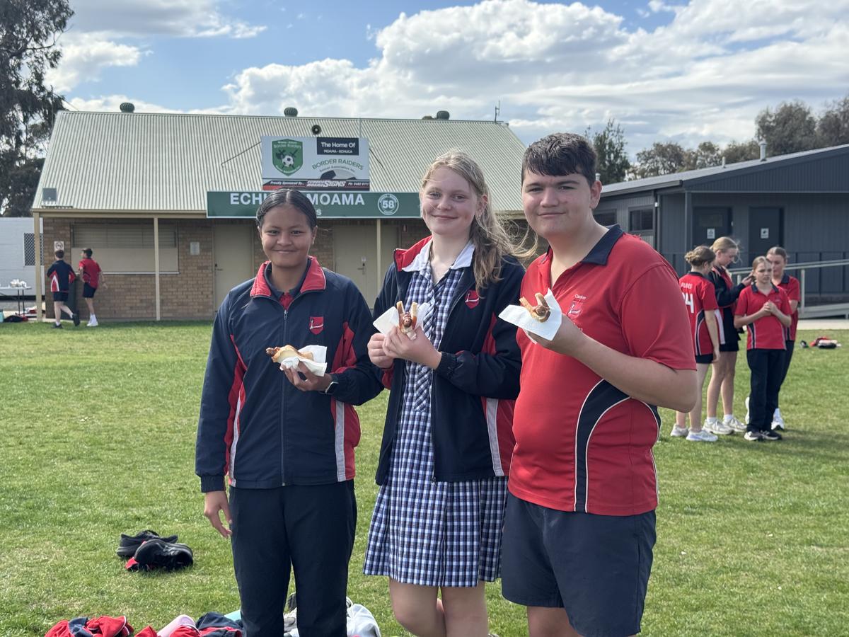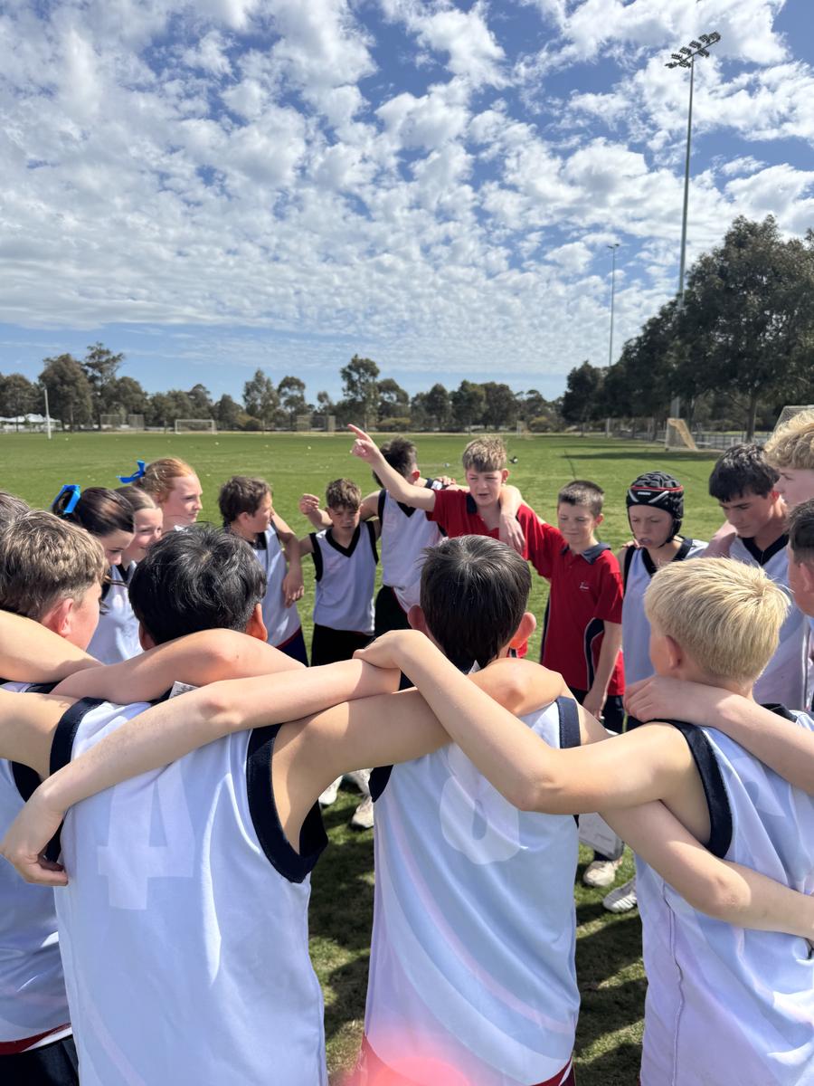 Our rival teams consisted of both girls and boys. Maelle Lyle performed the National Anthem, accompanied by the strong voices of our cohort. Our budding young umpires made sure we were playing by the rules. Our coaches fired up the players with some inspirational halftime speeches. The sausages in bread had plenty of tomato sauce, and there was plenty of cheering from the sidelines.