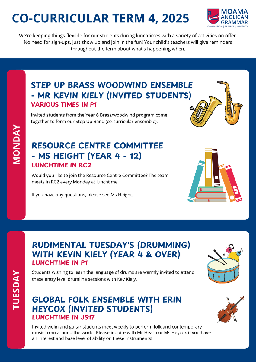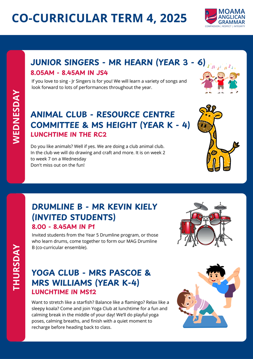 For more information about these clubs, please refer to the Co-Curricular flyer.