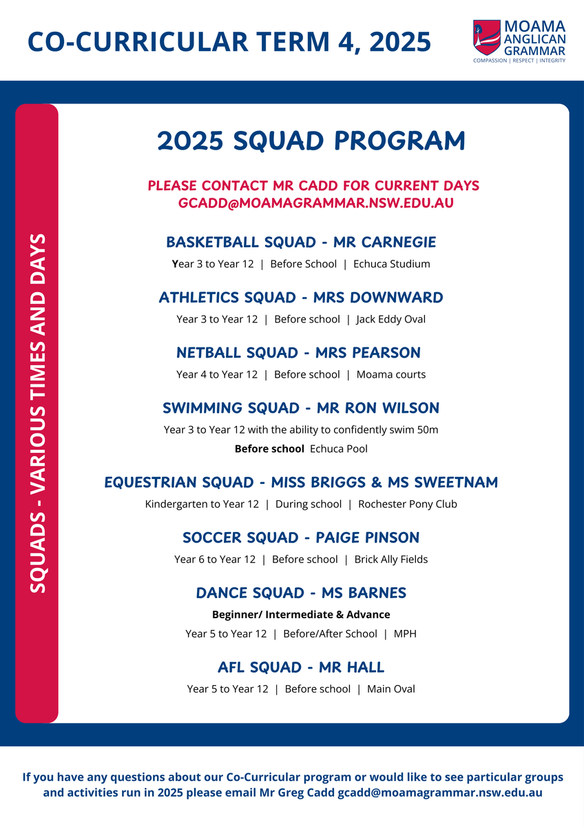 If you have any other enquiries, issues or concerns, please do not hesitate to contact us via phone by ringing the main office or via email address at library@moamagrammar.nsw.edu.au