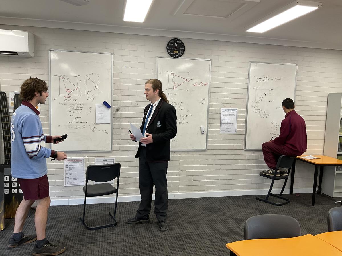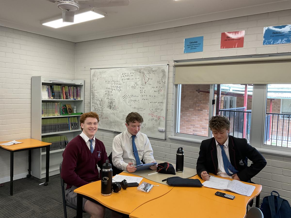 Mathematics Olympiad. Through four rigorous tests, they exhibited commendable effort, enthusiasm and problem-solving skills. As part of their preparation, a number of these students engaged in weekly practice sessions during Pi Shop, under the guidance of Xavier Houlihan and Conor Stirling, two of our Year 12 students. Xavier and Conor were accelerated in Mathematics and completed their HSC in Extension 2 Mathematics in 2024. The Mathematic’s faculty extends a huge thank you to both Xavier and Conor for the considerable effort and thought they have put into each of these sessions. These two students understood an important truth: when you learn to love maths, success tends to follow. Each Wednesday, Xavier and Conor had students participate in a range of groups activities aimed to foster thinking but more importantly, a love of the purest language of the universe- Mathematics.