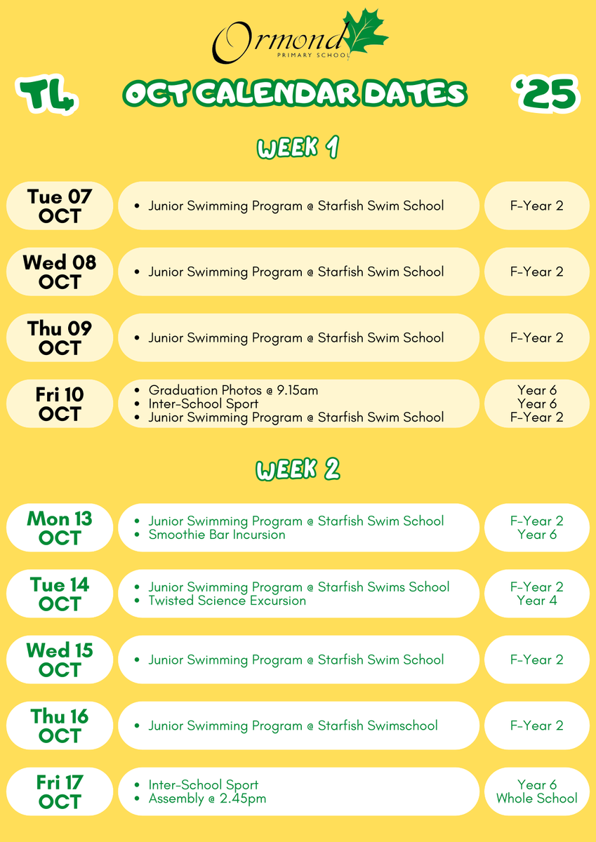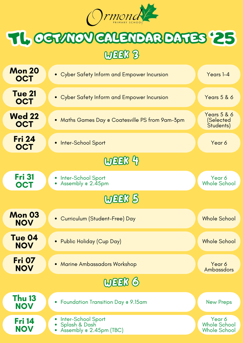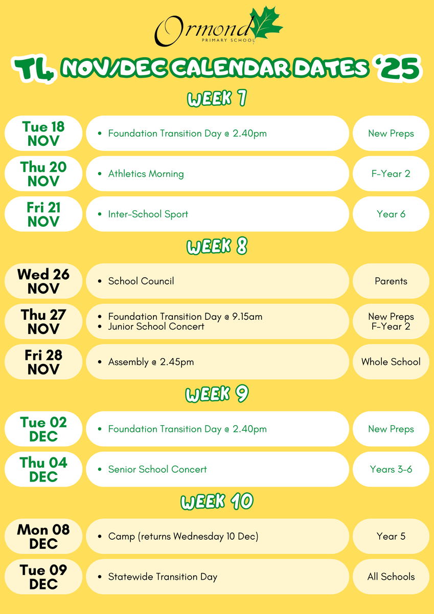 Term 4 Calendar Dates