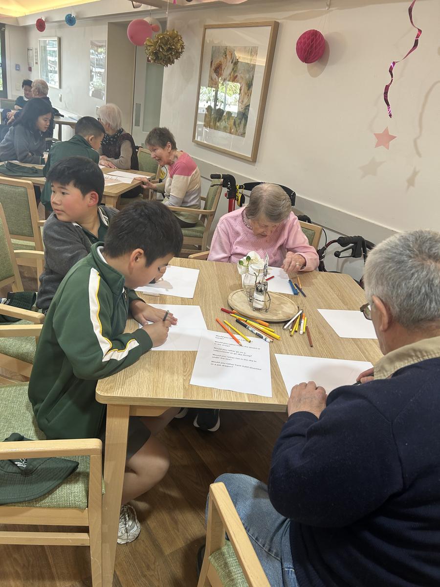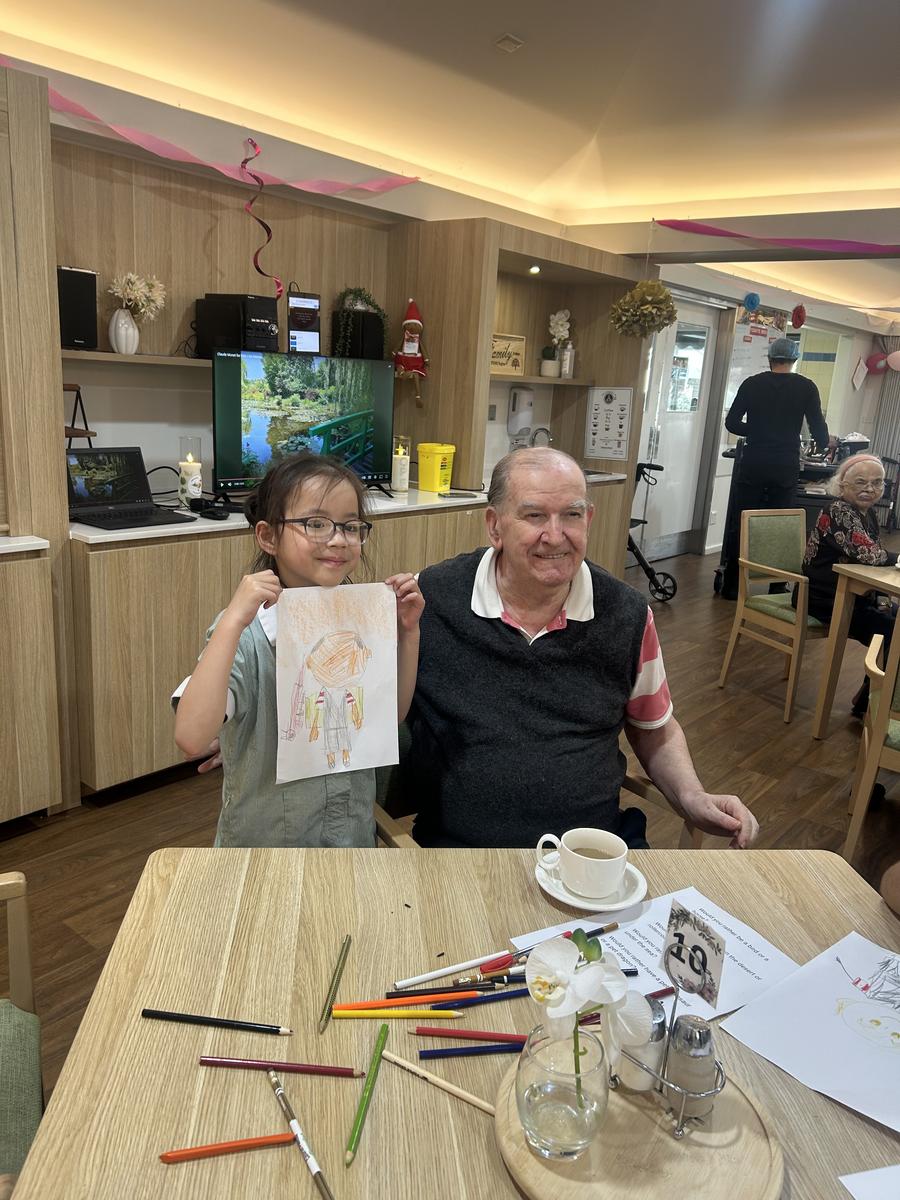 Grade 1/2B visited the hostel and shared their knowledge about French Impressionists with the residents. They spent time drawing together.