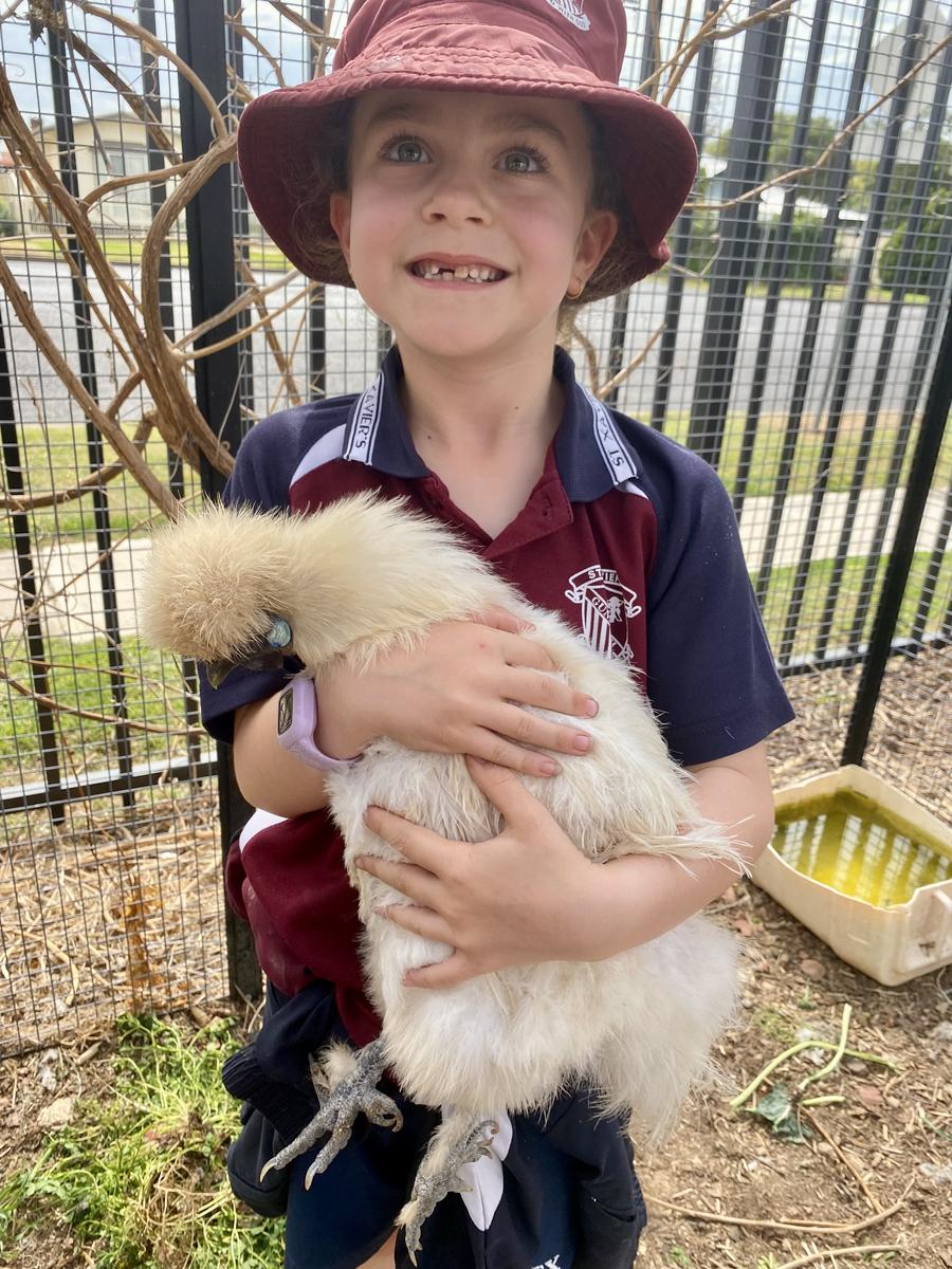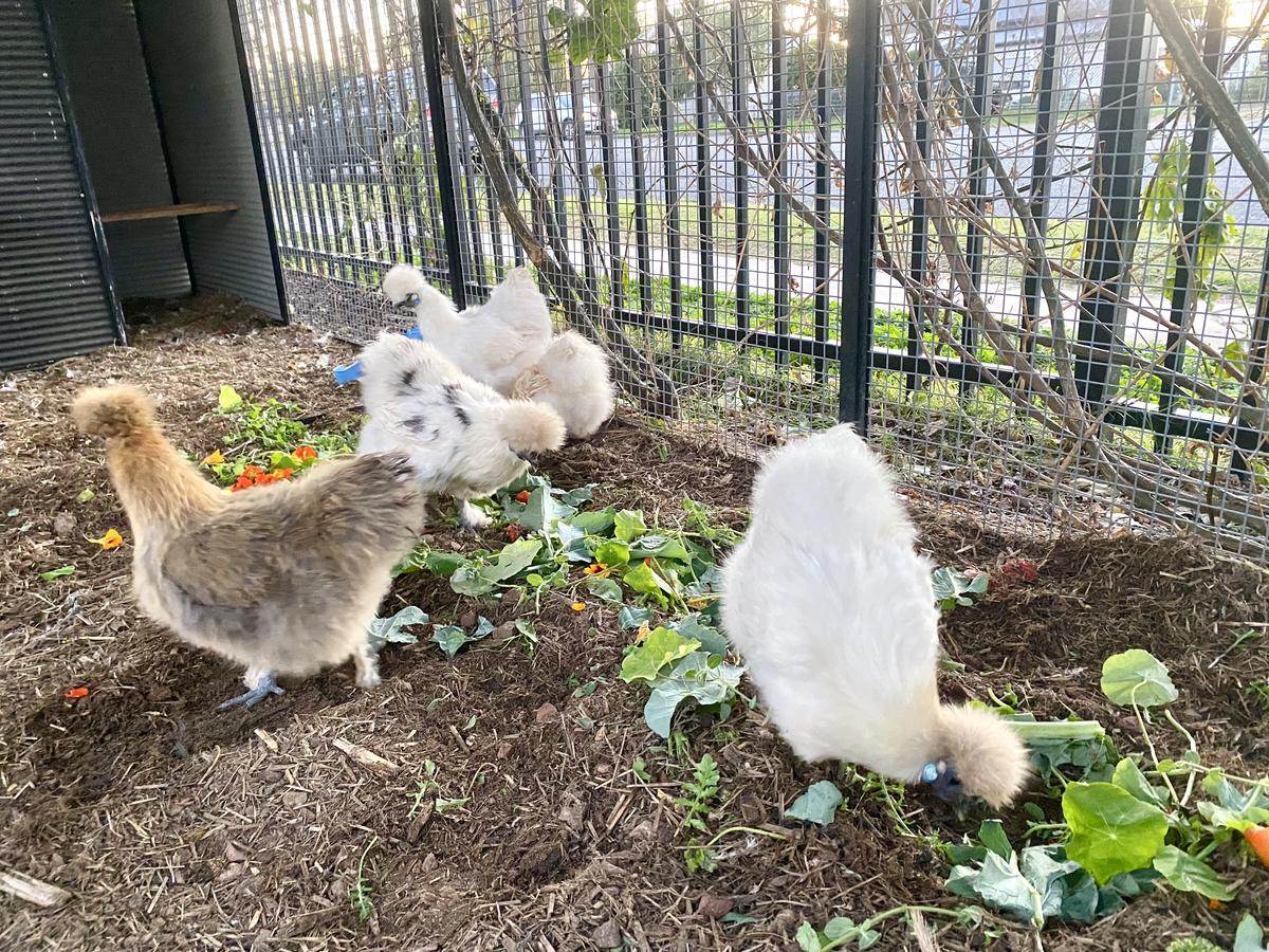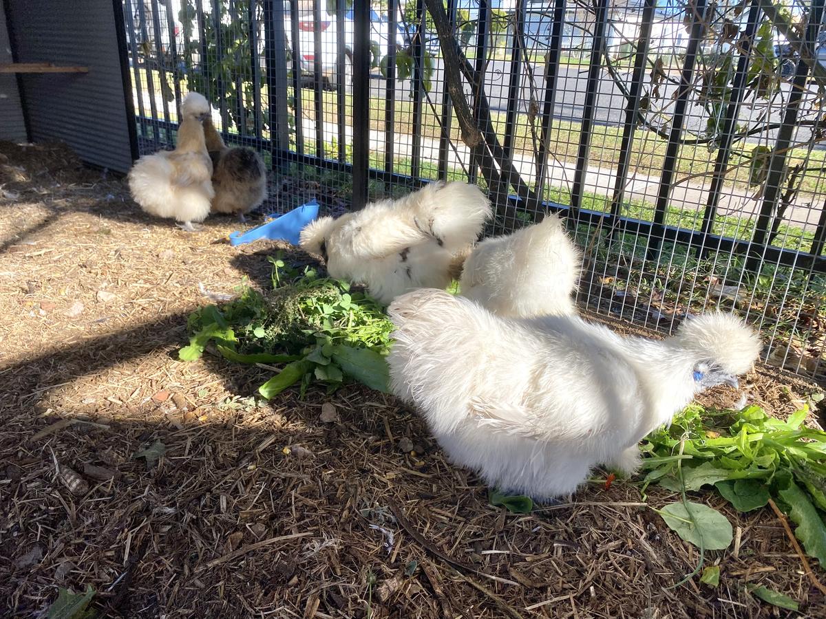 The children have many names for the chickens and enjoy collecting their eggs daily.