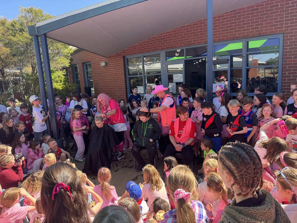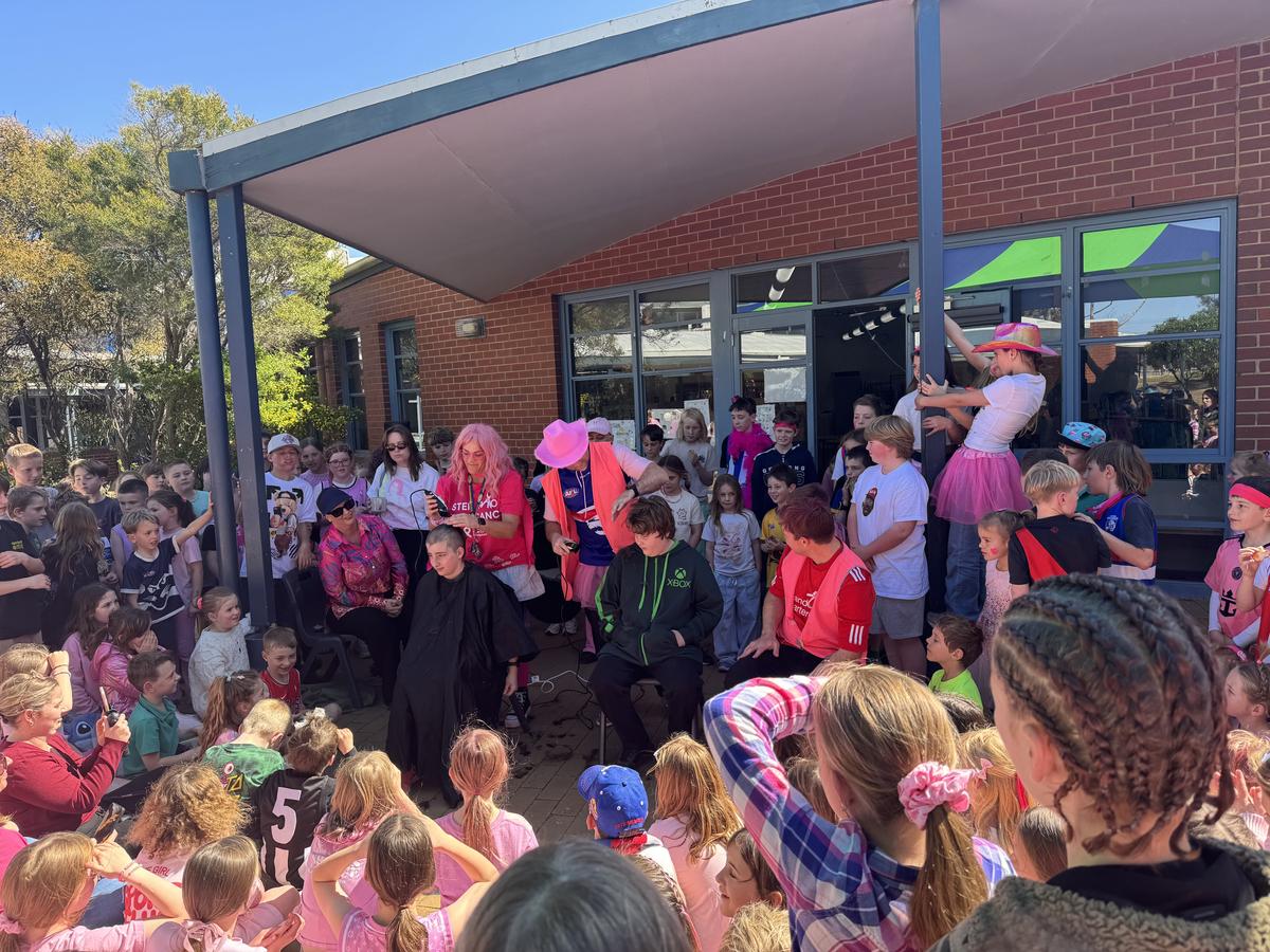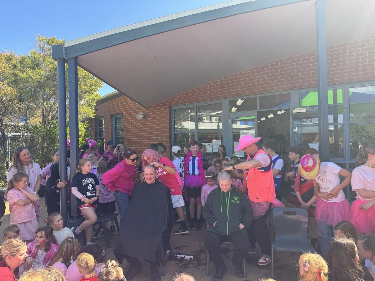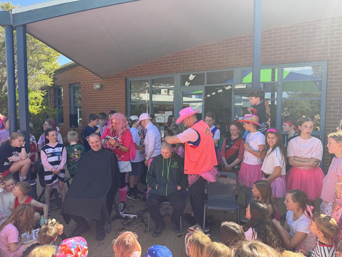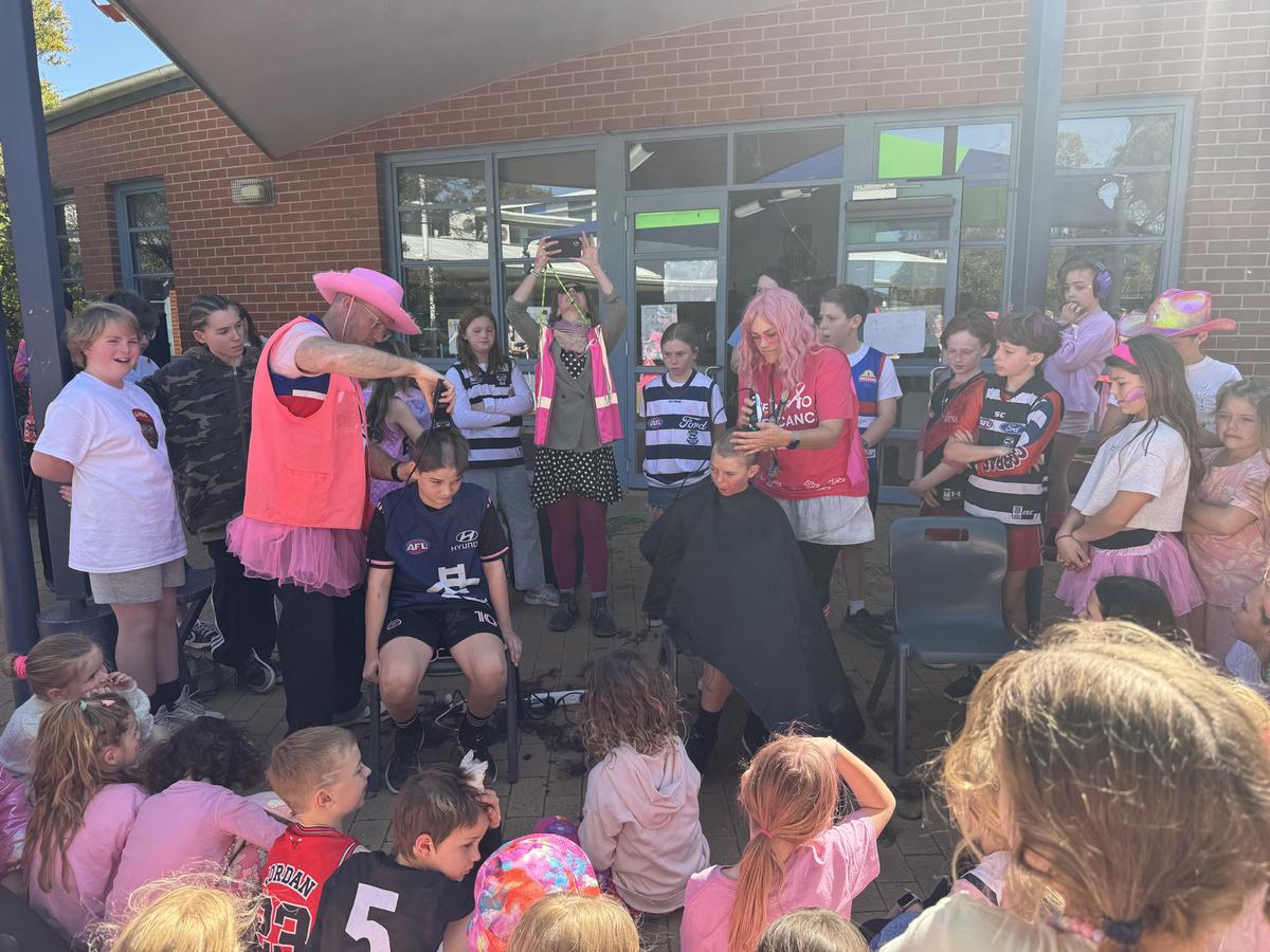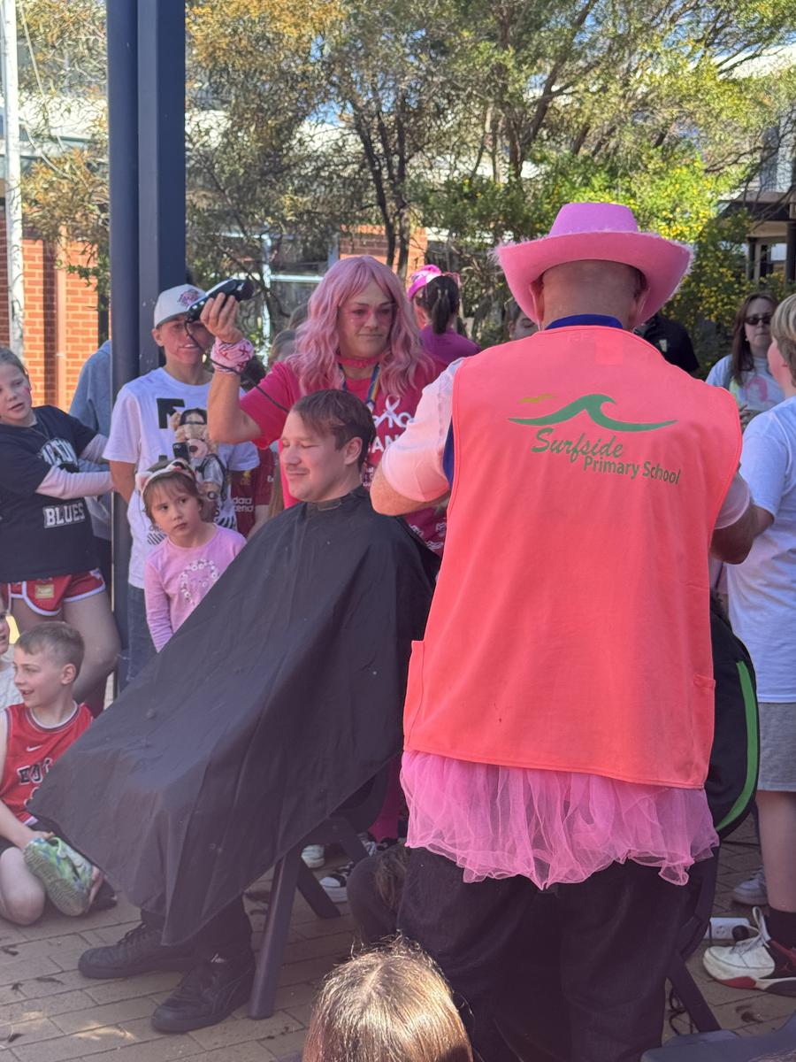 WOW!!! Surfside have turned up in style and loud and proud for our Pink Sports Day. The day started with breakfast for our staff, the arrival of a giant pink lady at the front of the school, the whole school attempting to replicate a pink lady on the basketball court and recess and lunch full of activities and delights. We had pink musk slice, pink coated cookies and pink icing cupcakes. Our year 6's did their best to get some face paint designs on all of the faces of Surfside and at lunchtime we danced to some uplifting tunes while we shaved a few familiar heads. What a fun day but more importantly an opportunity to support such an amazing cause for the Breast Cancer Network of Australia (BCNA)