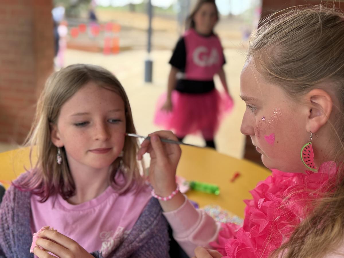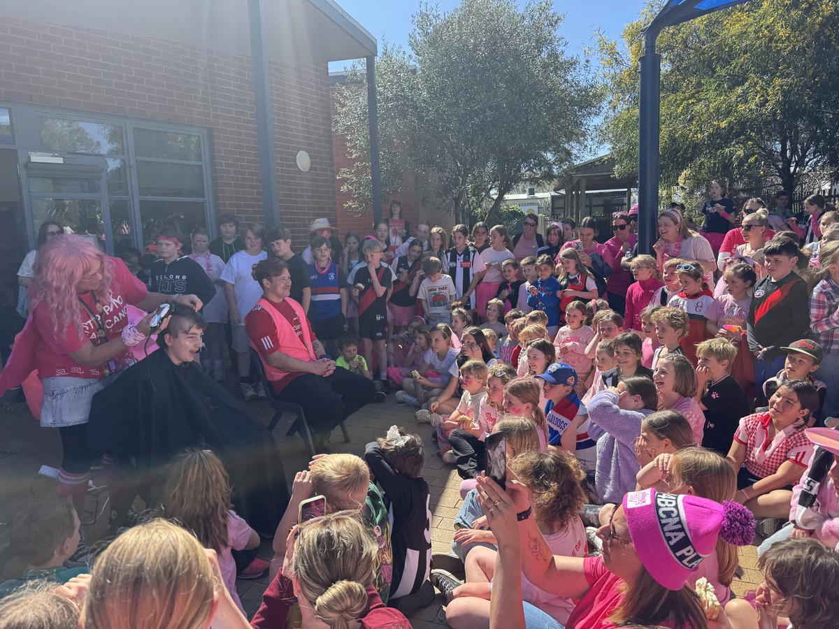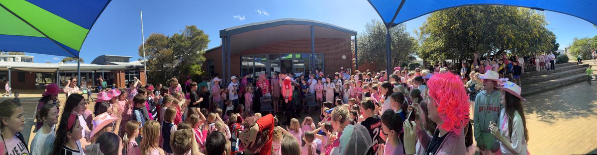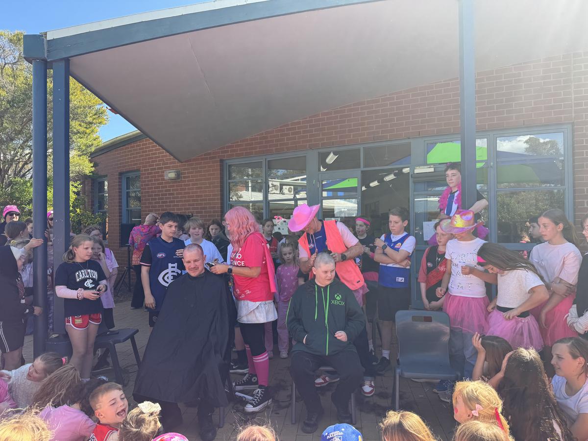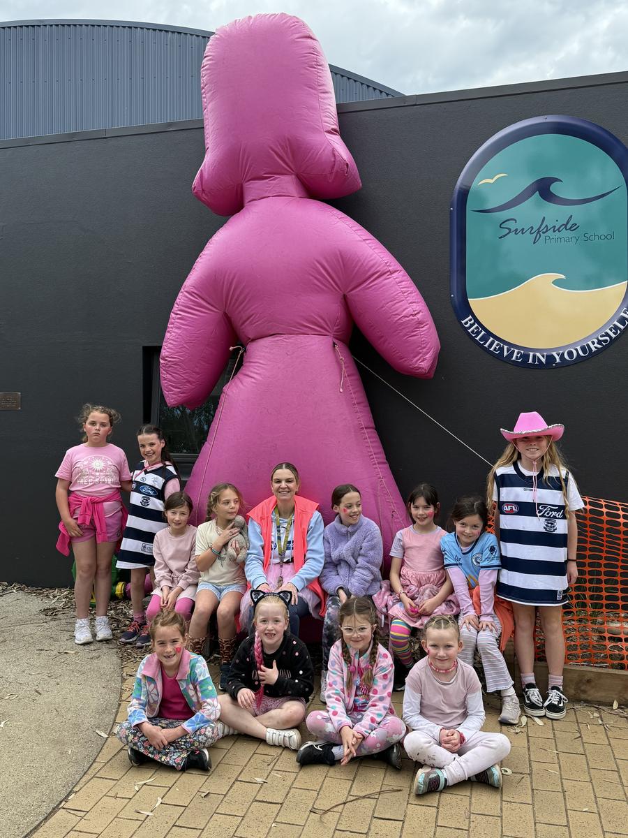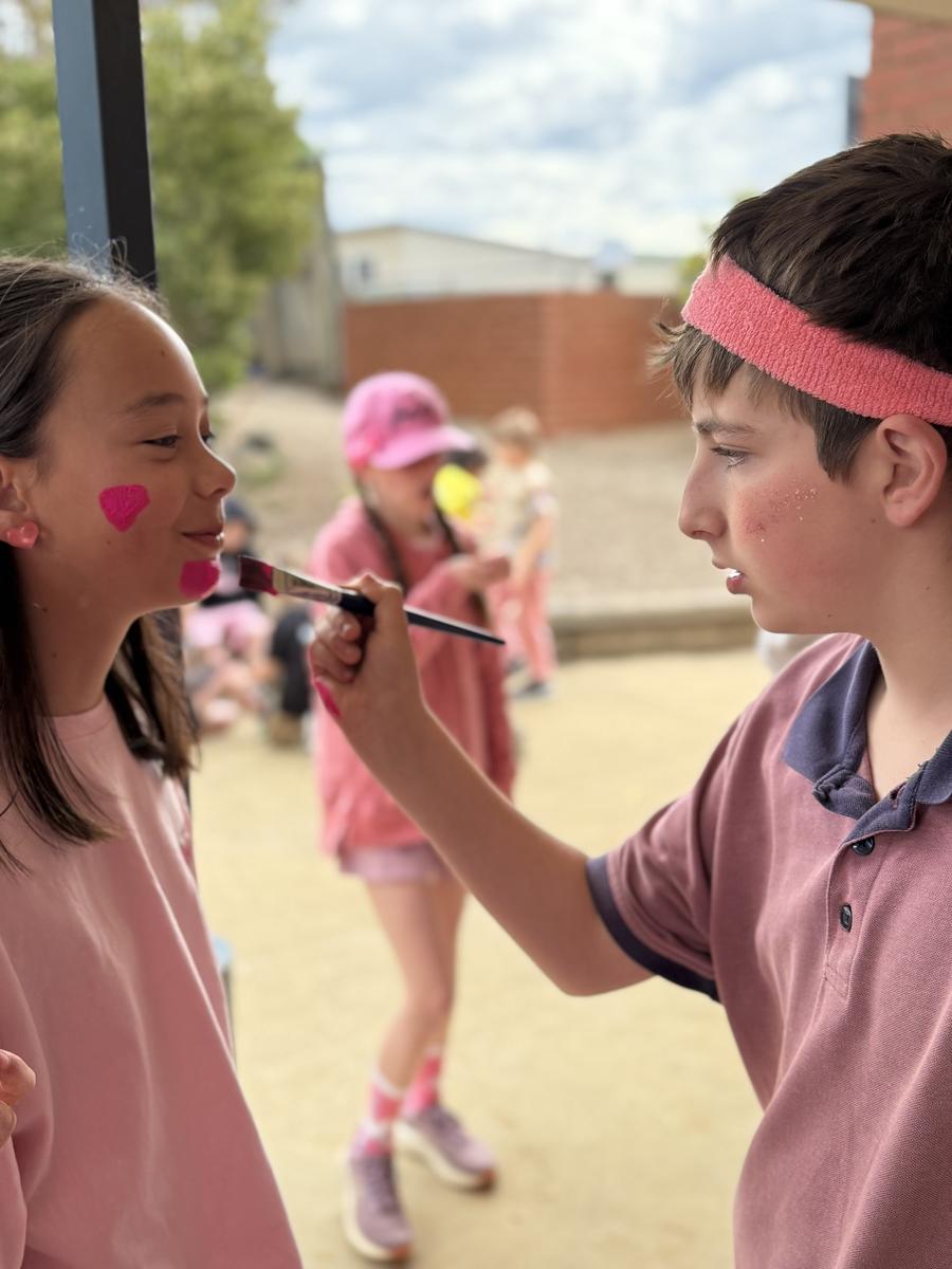 WOW!!! Surfside have turned up in style and loud and proud for our Pink Sports Day. The day started with breakfast for our staff, the arrival of a giant pink lady at the front of the school, the whole school attempting to replicate a pink lady on the basketball court and recess and lunch full of activities and delights. We had pink musk slice, pink coated cookies and pink icing cupcakes. Our year 6's did their best to get some face paint designs on all of the faces of Surfside and at lunchtime we danced to some uplifting tunes while we shaved a few familiar heads. What a fun day but more importantly an opportunity to support such an amazing cause for the Breast Cancer Network of Australia (BCNA)