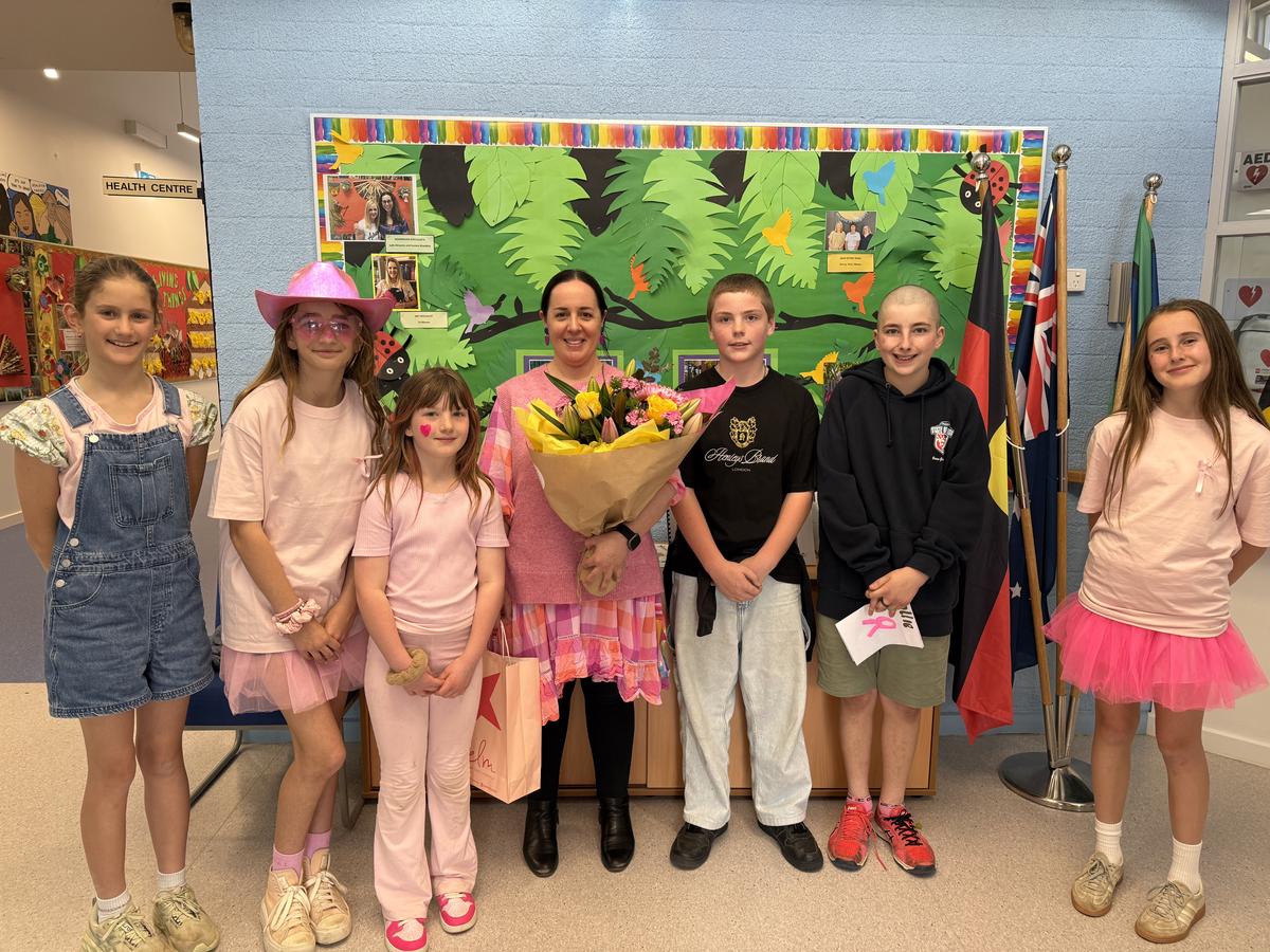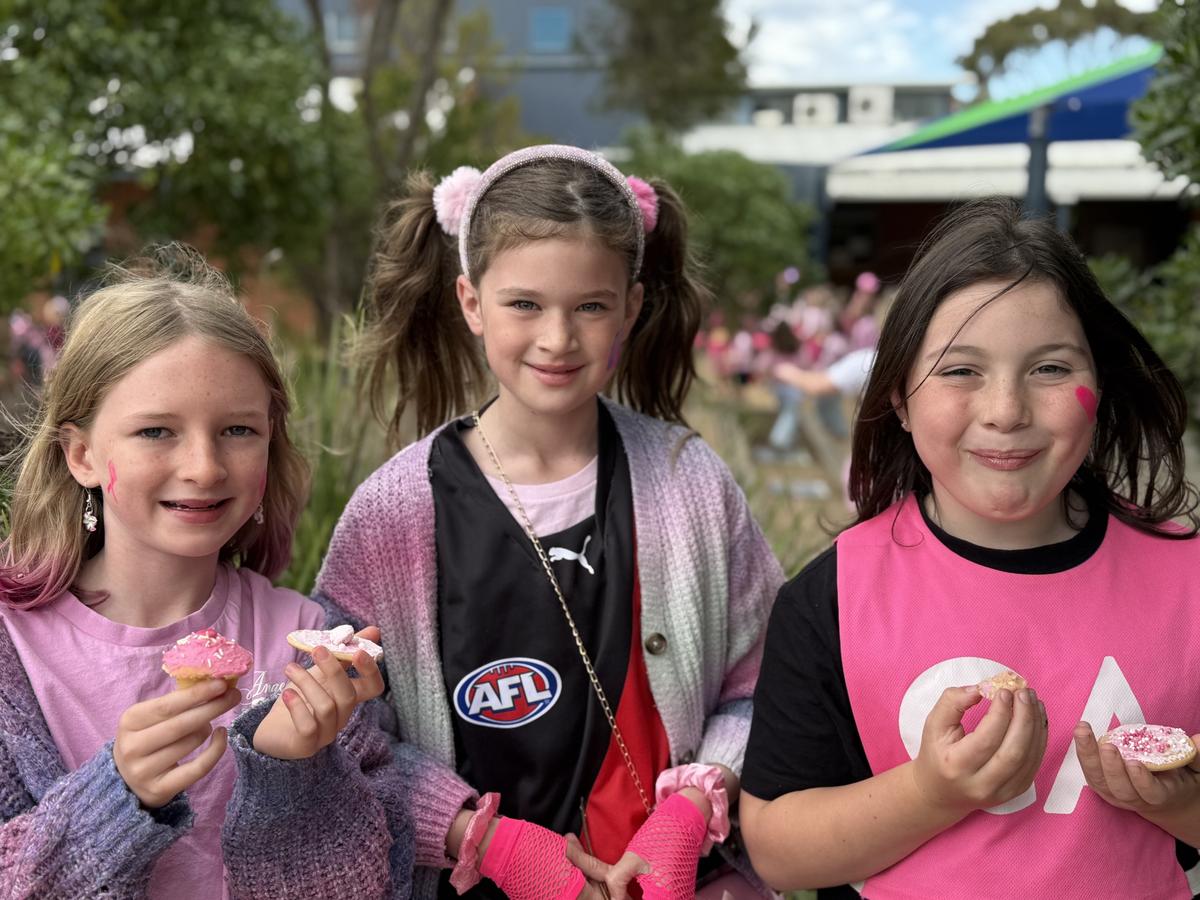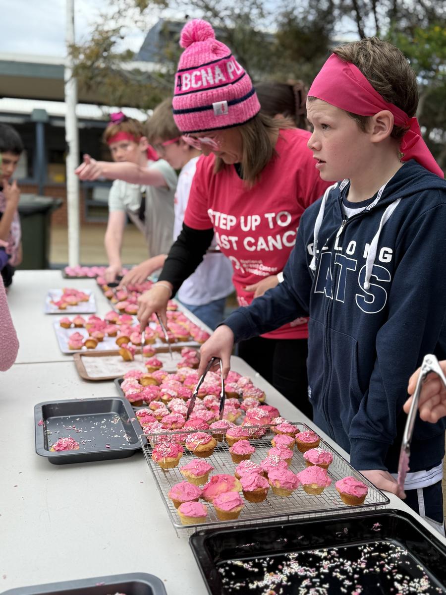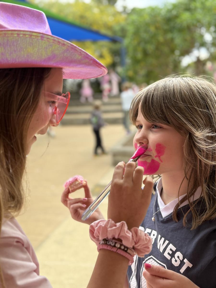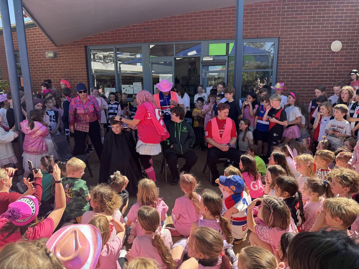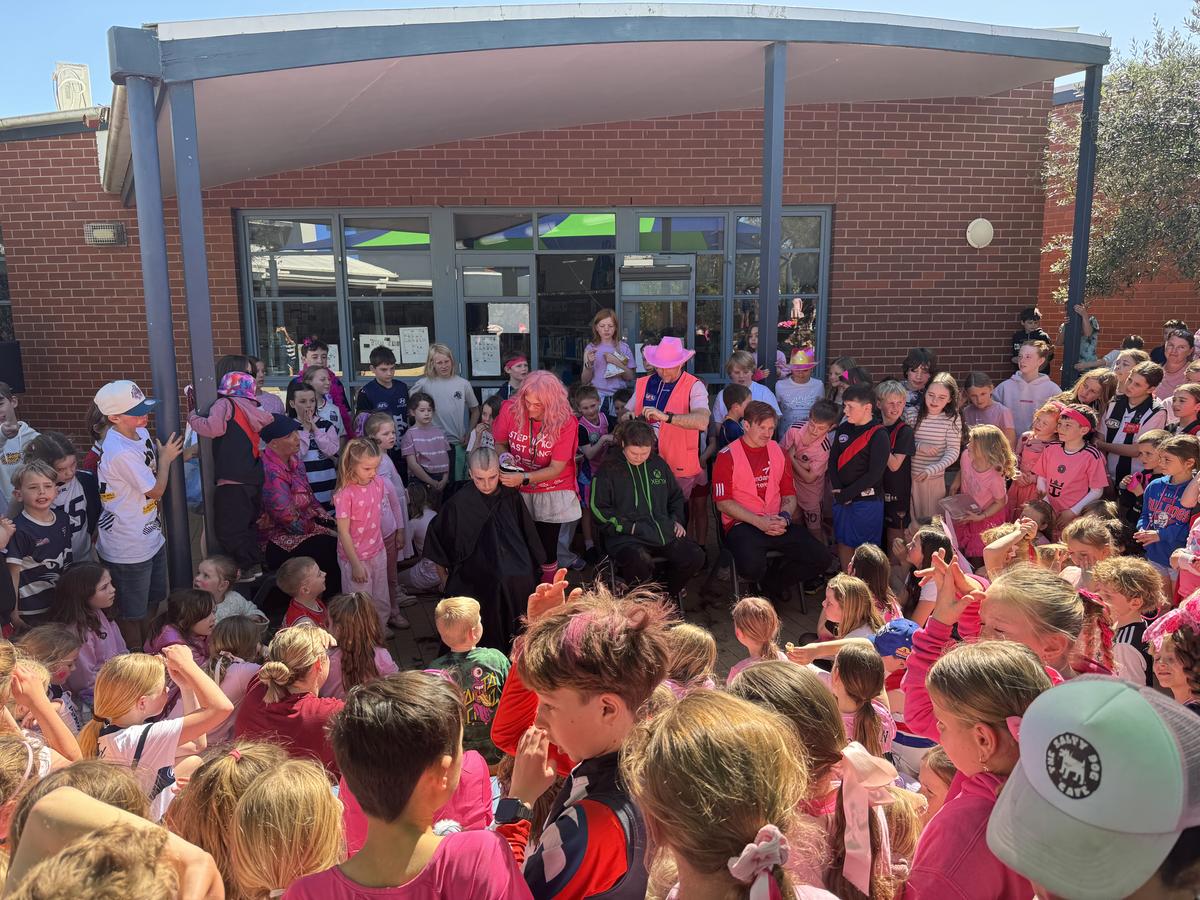 WOW!!! Surfside have turned up in style and loud and proud for our Pink Sports Day. The day started with breakfast for our staff, the arrival of a giant pink lady at the front of the school, the whole school attempting to replicate a pink lady on the basketball court and recess and lunch full of activities and delights. We had pink musk slice, pink coated cookies and pink icing cupcakes. Our year 6's did their best to get some face paint designs on all of the faces of Surfside and at lunchtime we danced to some uplifting tunes while we shaved a few familiar heads. What a fun day but more importantly an opportunity to support such an amazing cause for the Breast Cancer Network of Australia (BCNA)