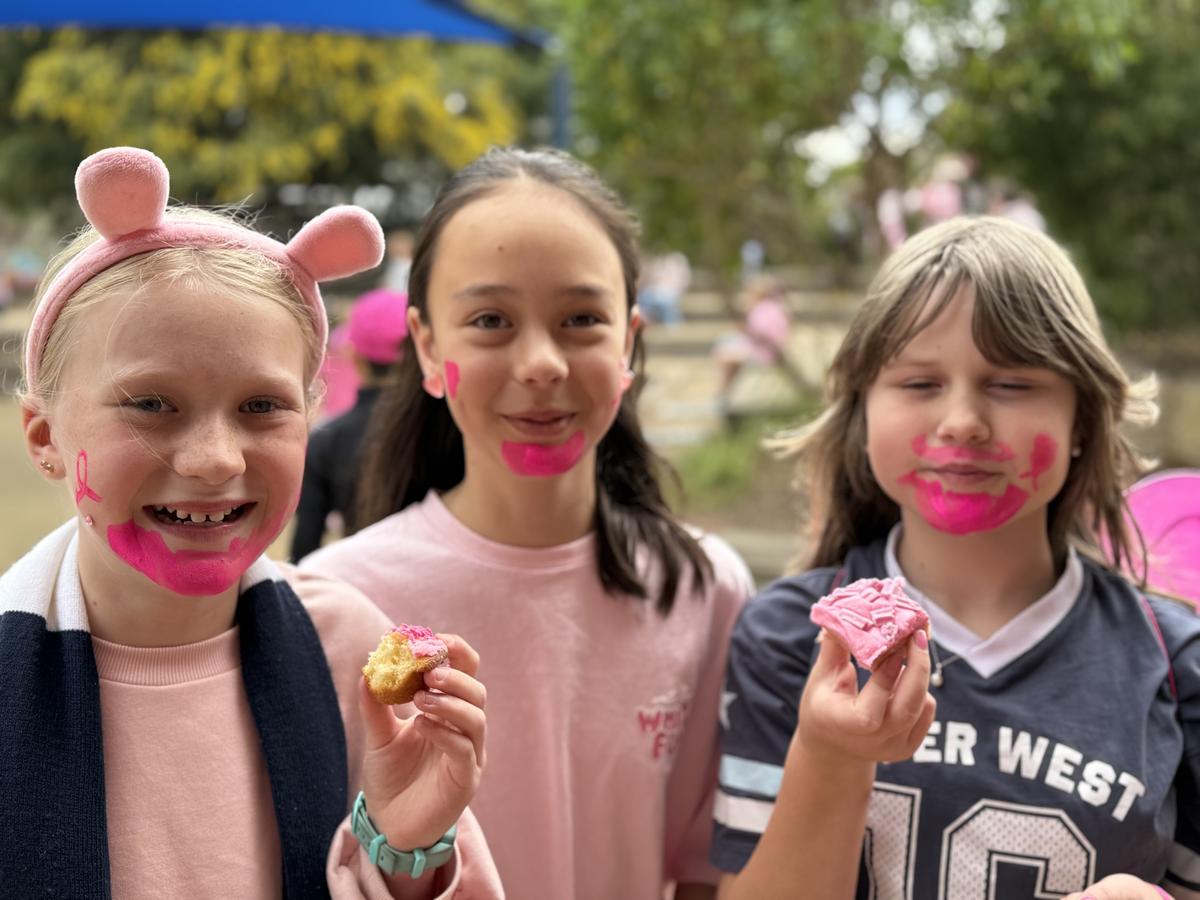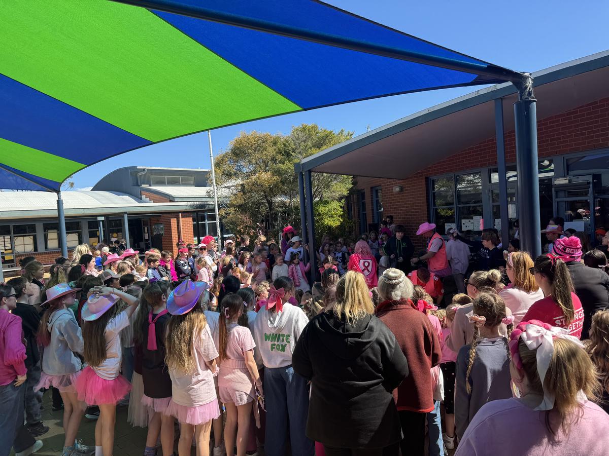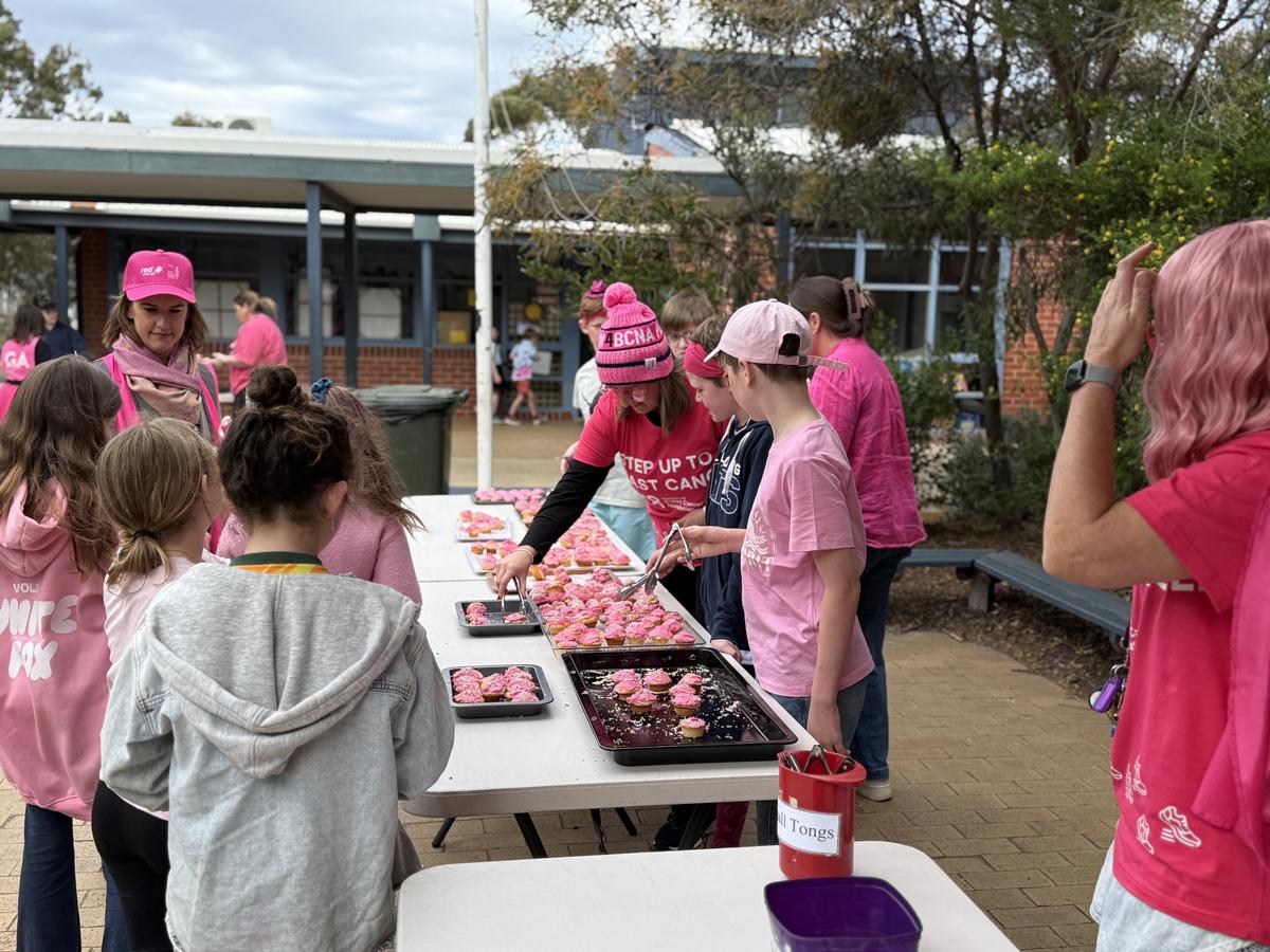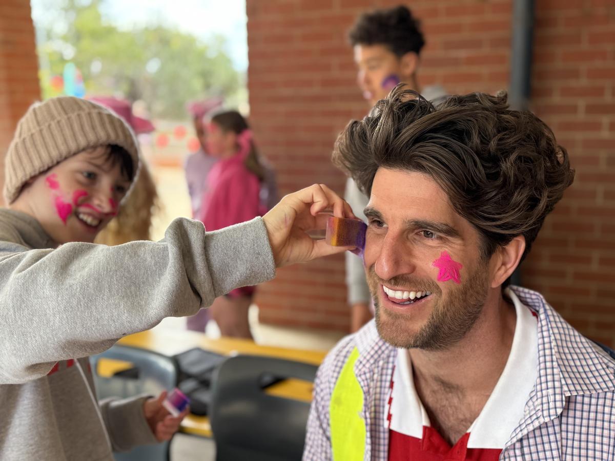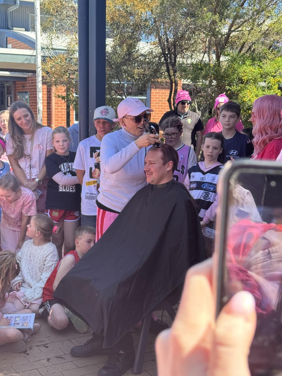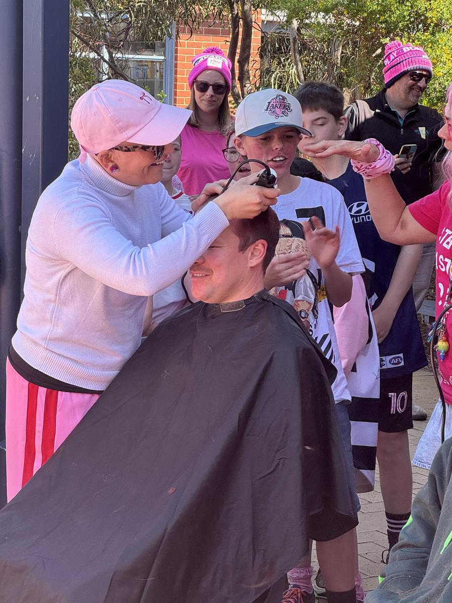 WOW!!! Surfside have turned up in style and loud and proud for our Pink Sports Day. The day started with breakfast for our staff, the arrival of a giant pink lady at the front of the school, the whole school attempting to replicate a pink lady on the basketball court and recess and lunch full of activities and delights. We had pink musk slice, pink coated cookies and pink icing cupcakes. Our year 6's did their best to get some face paint designs on all of the faces of Surfside and at lunchtime we danced to some uplifting tunes while we shaved a few familiar heads. What a fun day but more importantly an opportunity to support such an amazing cause for the Breast Cancer Network of Australia (BCNA)