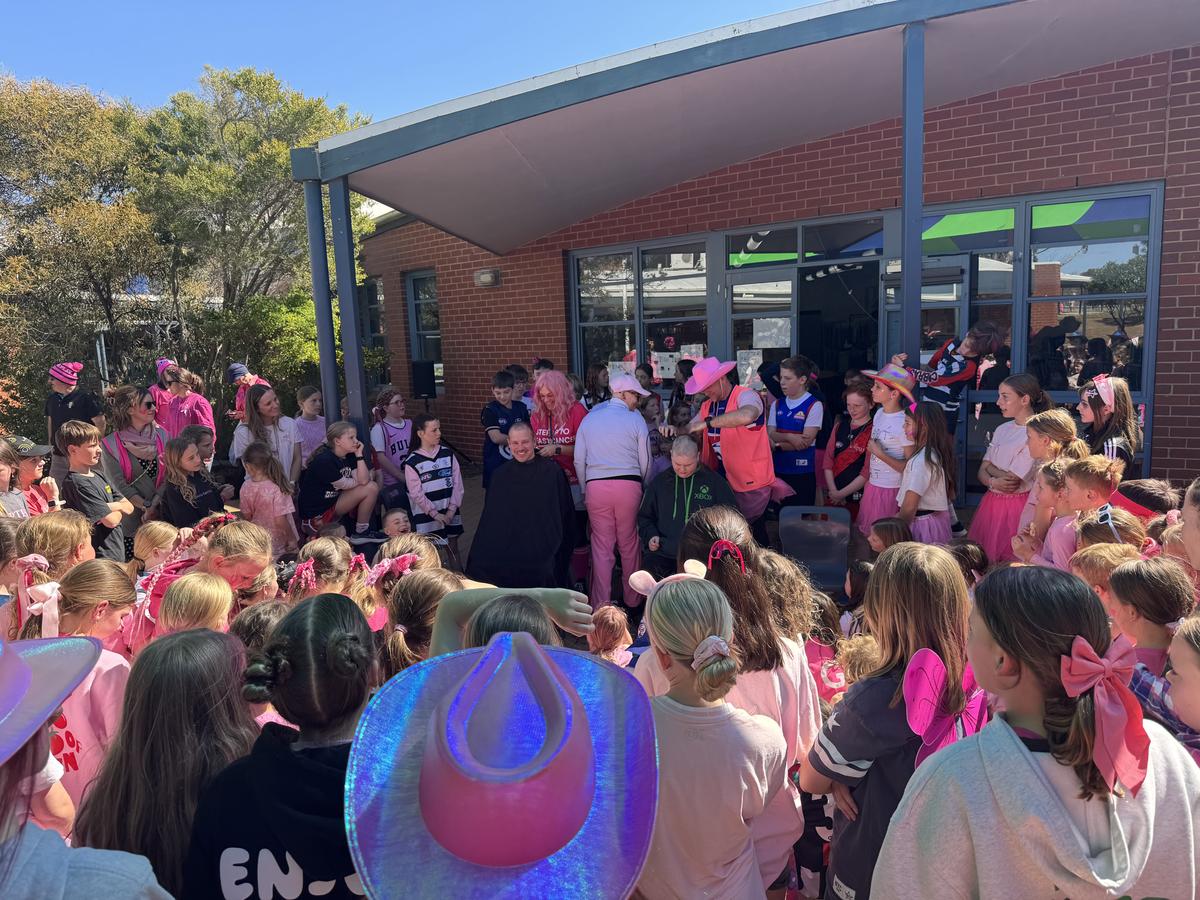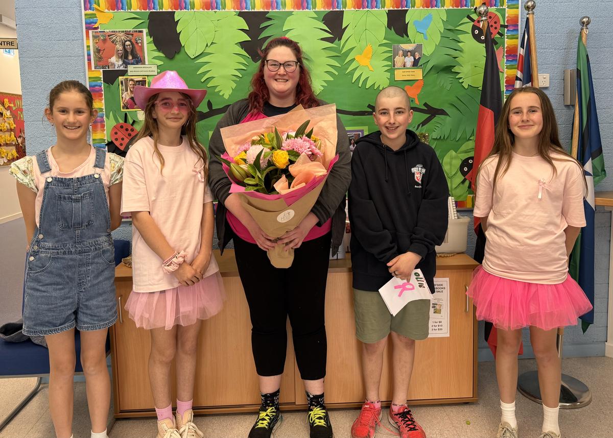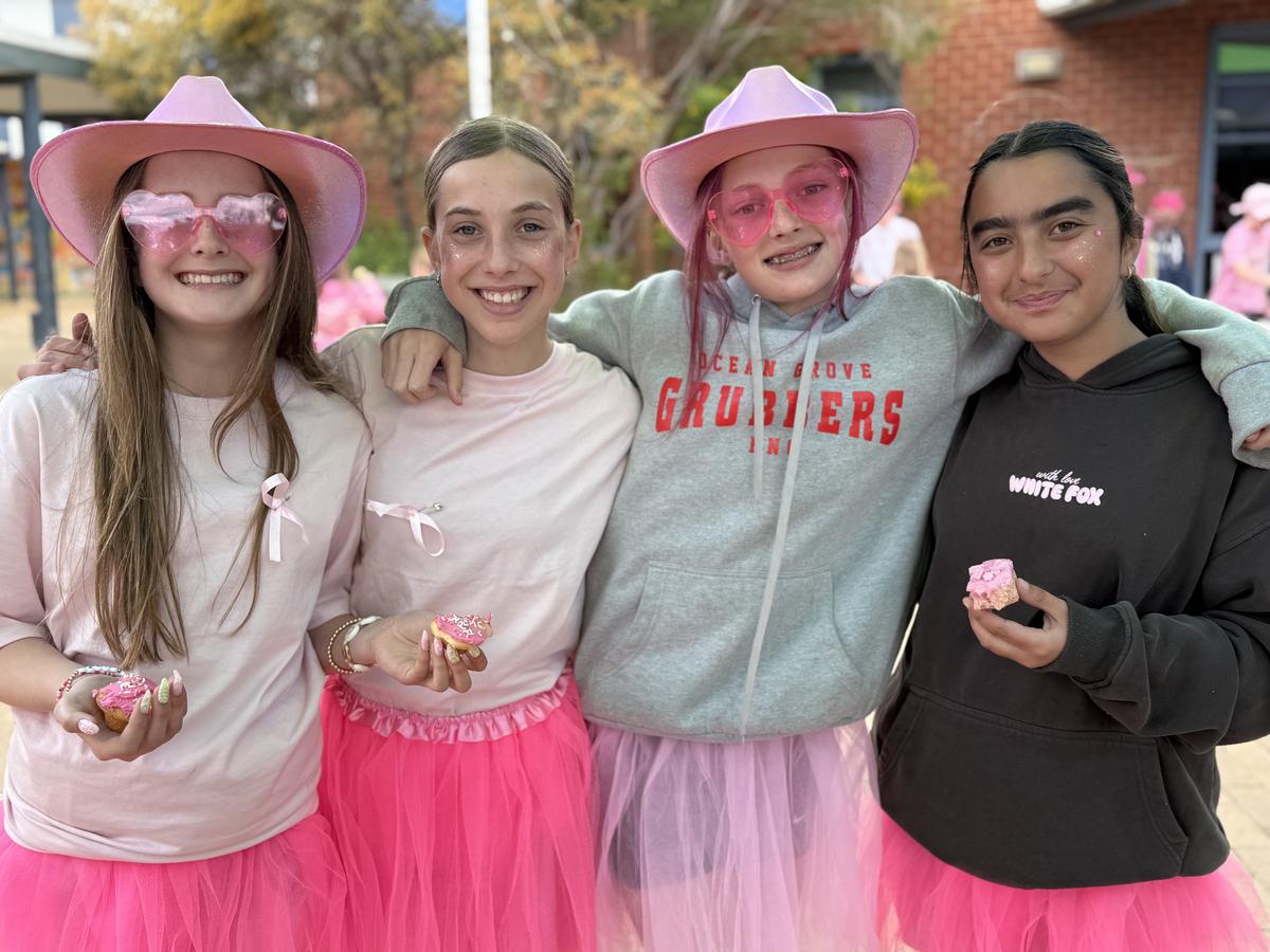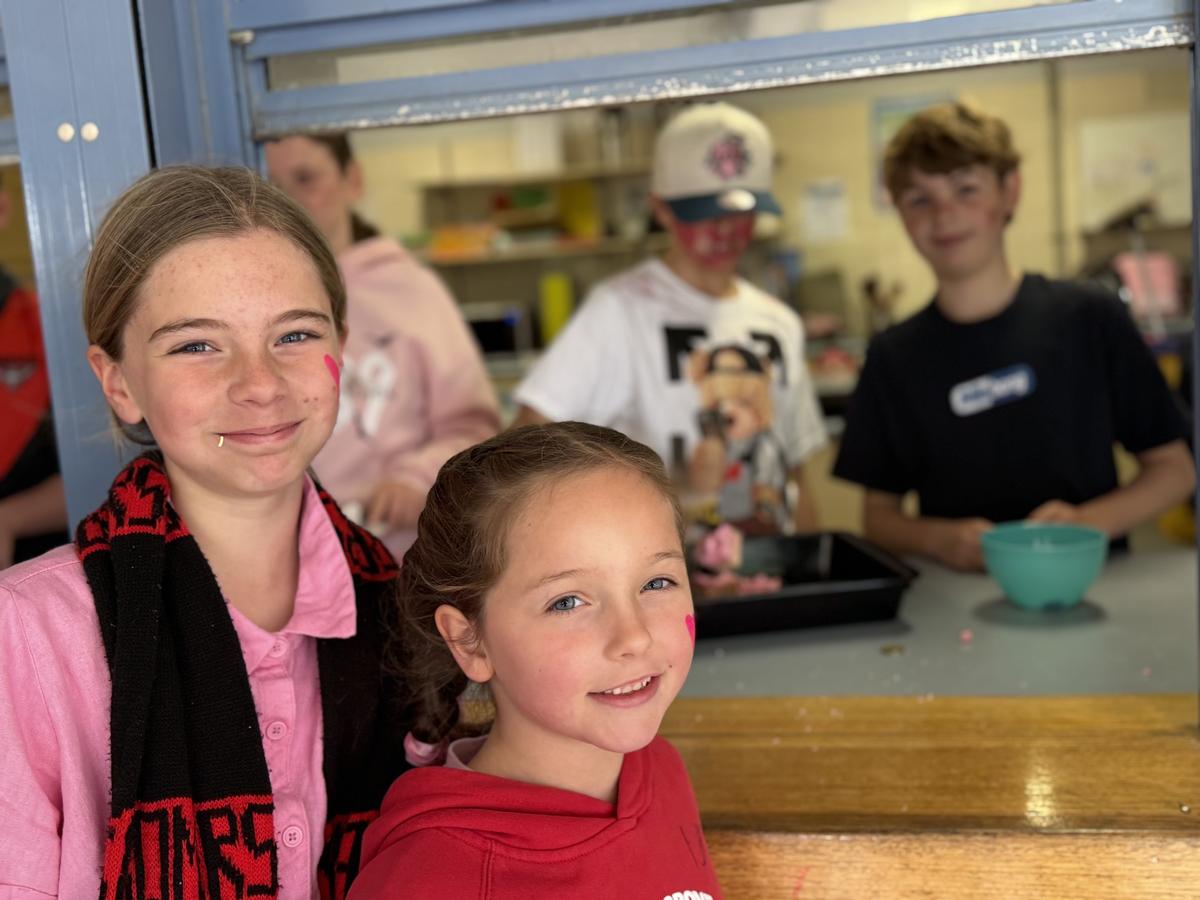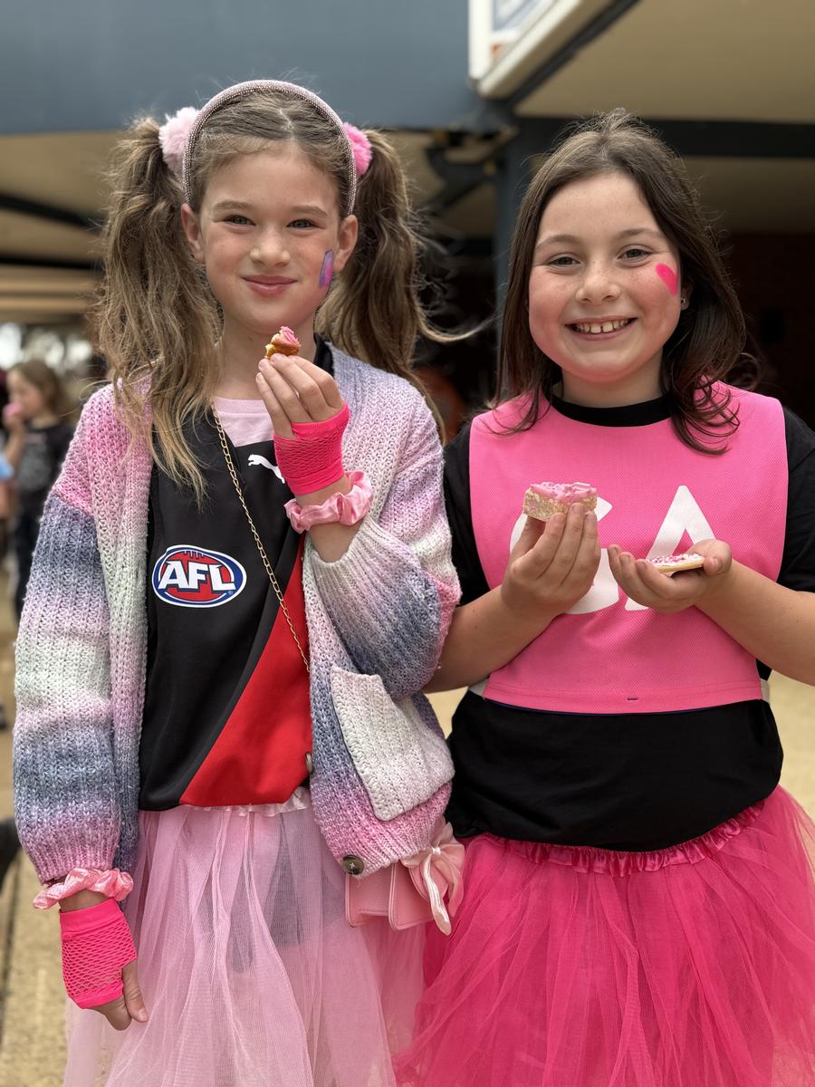 WOW!!! Surfside have turned up in style and loud and proud for our Pink Sports Day. The day started with breakfast for our staff, the arrival of a giant pink lady at the front of the school, the whole school attempting to replicate a pink lady on the basketball court and recess and lunch full of activities and delights. We had pink musk slice, pink coated cookies and pink icing cupcakes. Our year 6's did their best to get some face paint designs on all of the faces of Surfside and at lunchtime we danced to some uplifting tunes while we shaved a few familiar heads. What a fun day but more importantly an opportunity to support such an amazing cause for the Breast Cancer Network of Australia (BCNA)