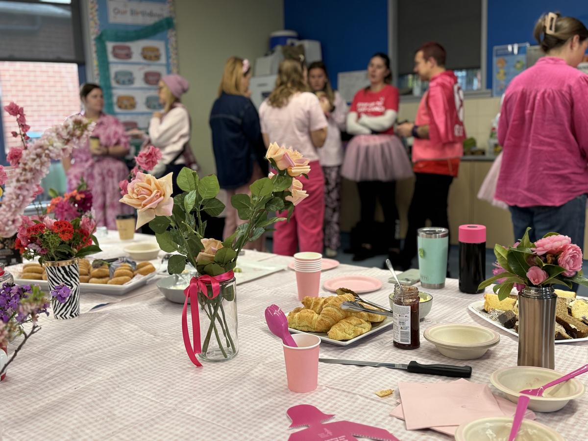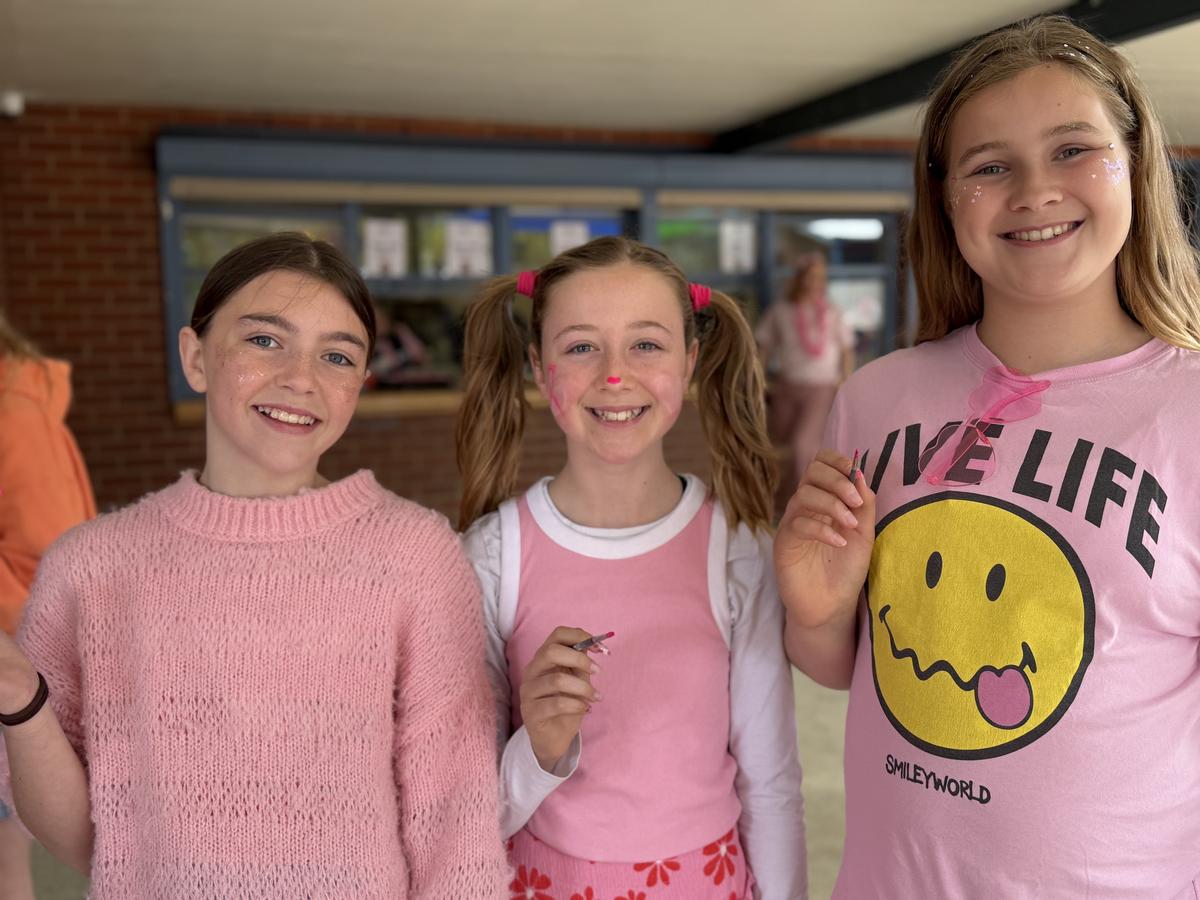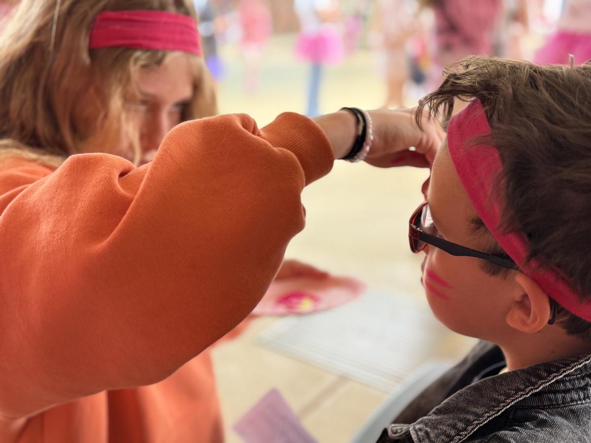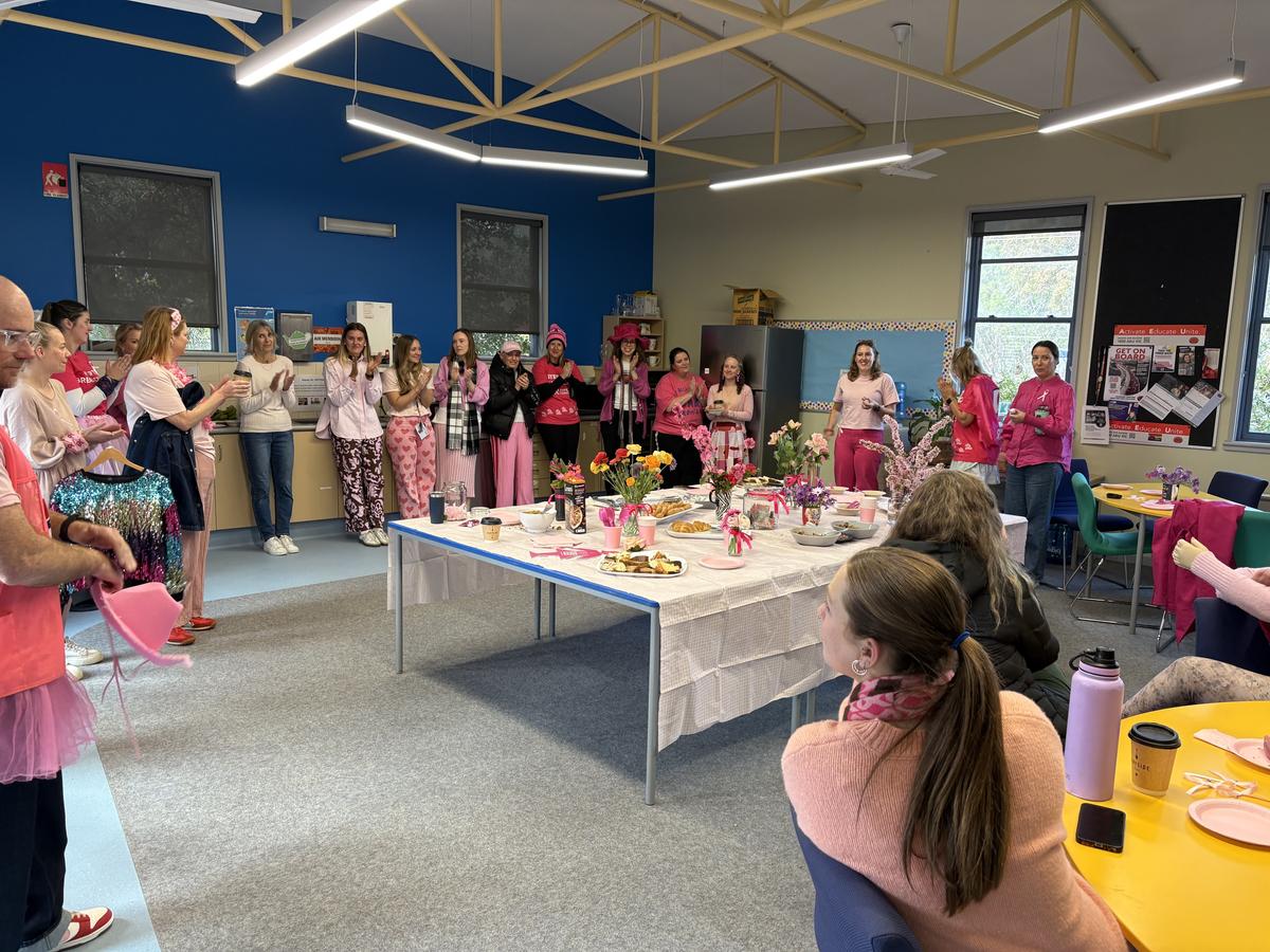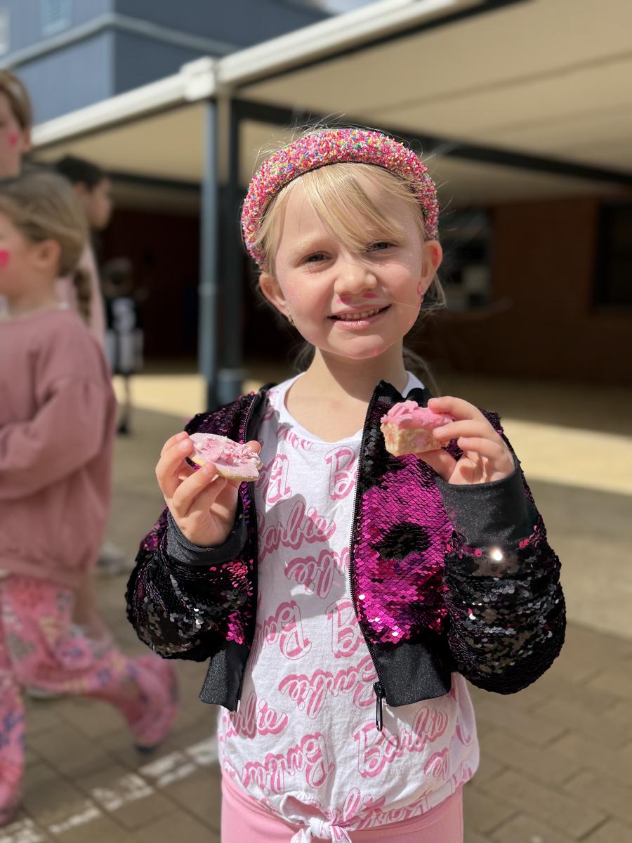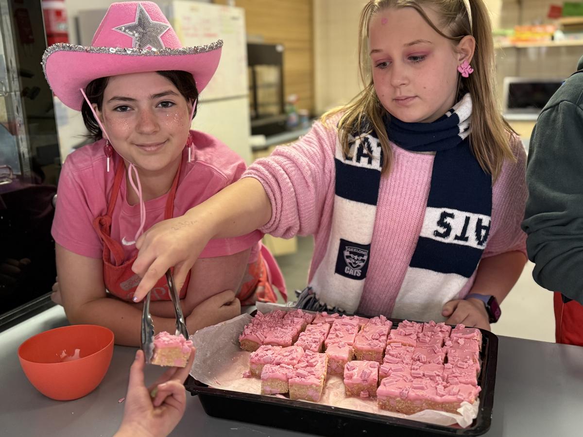 WOW!!! Surfside have turned up in style and loud and proud for our Pink Sports Day. The day started with breakfast for our staff, the arrival of a giant pink lady at the front of the school, the whole school attempting to replicate a pink lady on the basketball court and recess and lunch full of activities and delights. We had pink musk slice, pink coated cookies and pink icing cupcakes. Our year 6's did their best to get some face paint designs on all of the faces of Surfside and at lunchtime we danced to some uplifting tunes while we shaved a few familiar heads. What a fun day but more importantly an opportunity to support such an amazing cause for the Breast Cancer Network of Australia (BCNA)