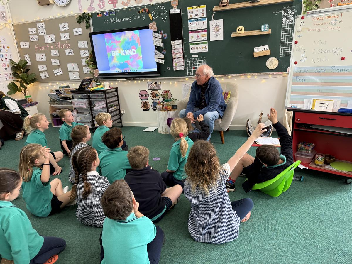 We were thrilled to welcome Surfside royalty through the doors this week when Lindsay Fisher popped in for a cup of tea and a tour around the school. Lindsay was the first ever Principal at Surfside from 1991to 2000. Lindsay enjoyed walking around the school and said some things have really changed but many things remain the same. He loved popping into some classes, speaking to some kids and sharing some stories about the history of Surfside.