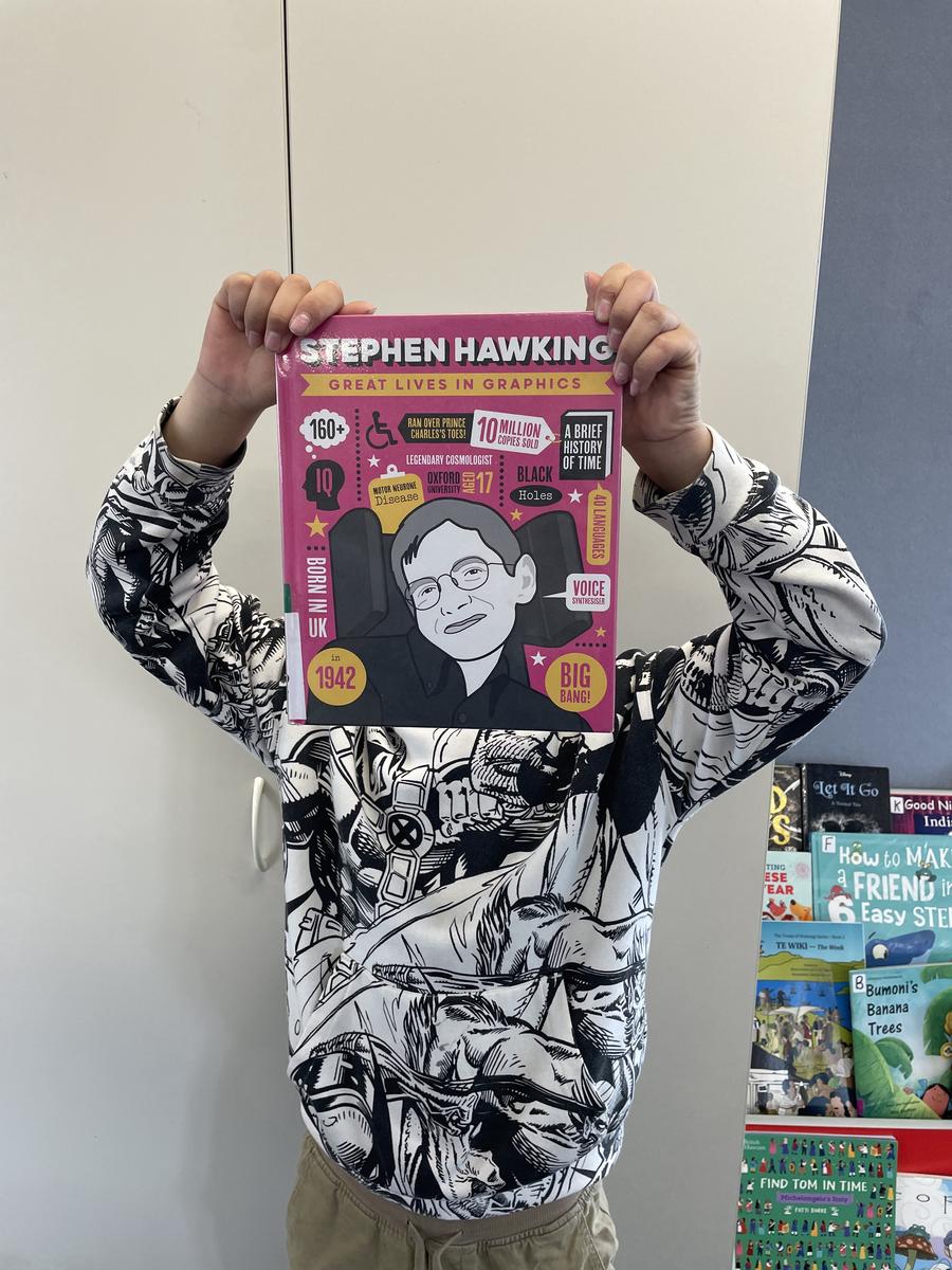 Whaea Jessie and some of our children had a bit of fun in the Whare Pukapuka/library late last term, finding books with titles that matched us perfectly. Here are a few fun examples.