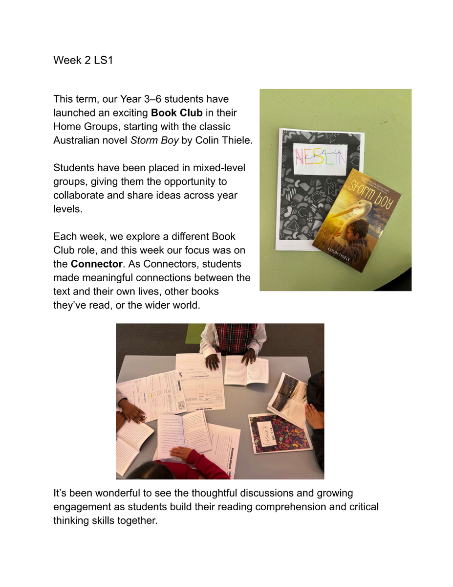 If this is something you would be interested in doing please email Joanna -jforbes@sfslynbrook.catholic.edu.au with your name, child’s name, learning space and availability (day and time) by Friday 2nd May.