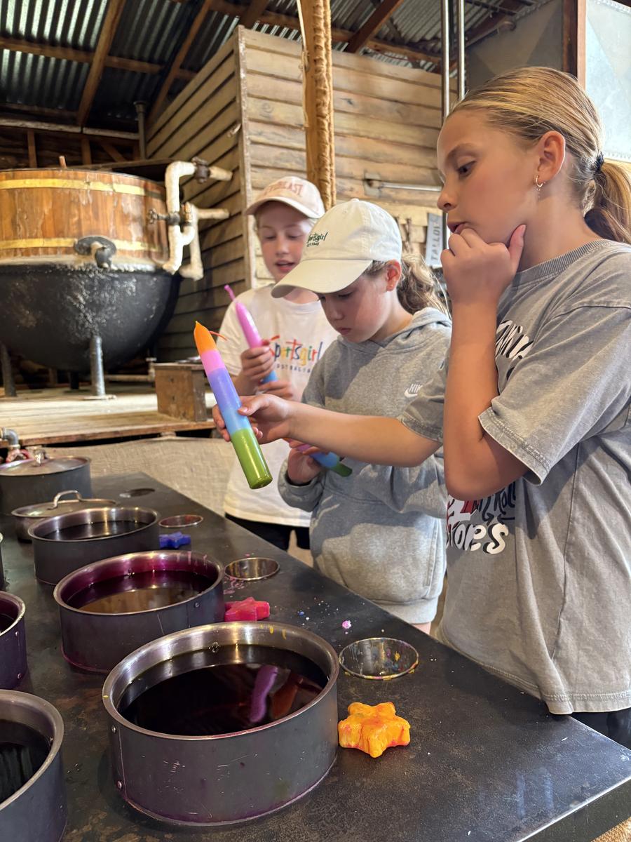 The students were so attentive at the education session where they learnt about what it was like for the Chinese miners who lived in the Chinese miners camp. We learnt how resourceful and hard working they were, given the poor conditions and compromised location of their camp. The candle dipping, the confectionary demonstration and the gold pour were also highlights. The students were impressed to think that a candle had other functions besides providing light underground. Candles were used to measure time and also the level of oxygen underground.
