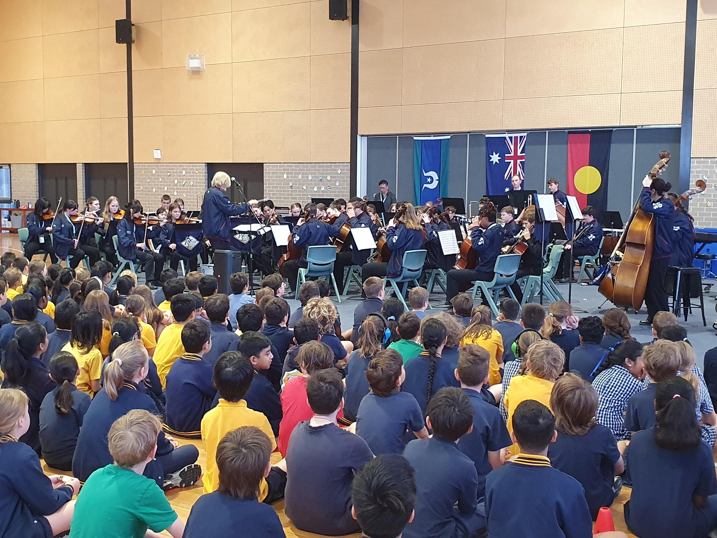 On Thursday 24th of April, our year 3 - 6 students were very fortunate to have an orchestral incursion at our school. Travelling from the Gold Coast, Robina State High School rocked up in the early morning, with instruments in hand, ready to put on a memorable performance.