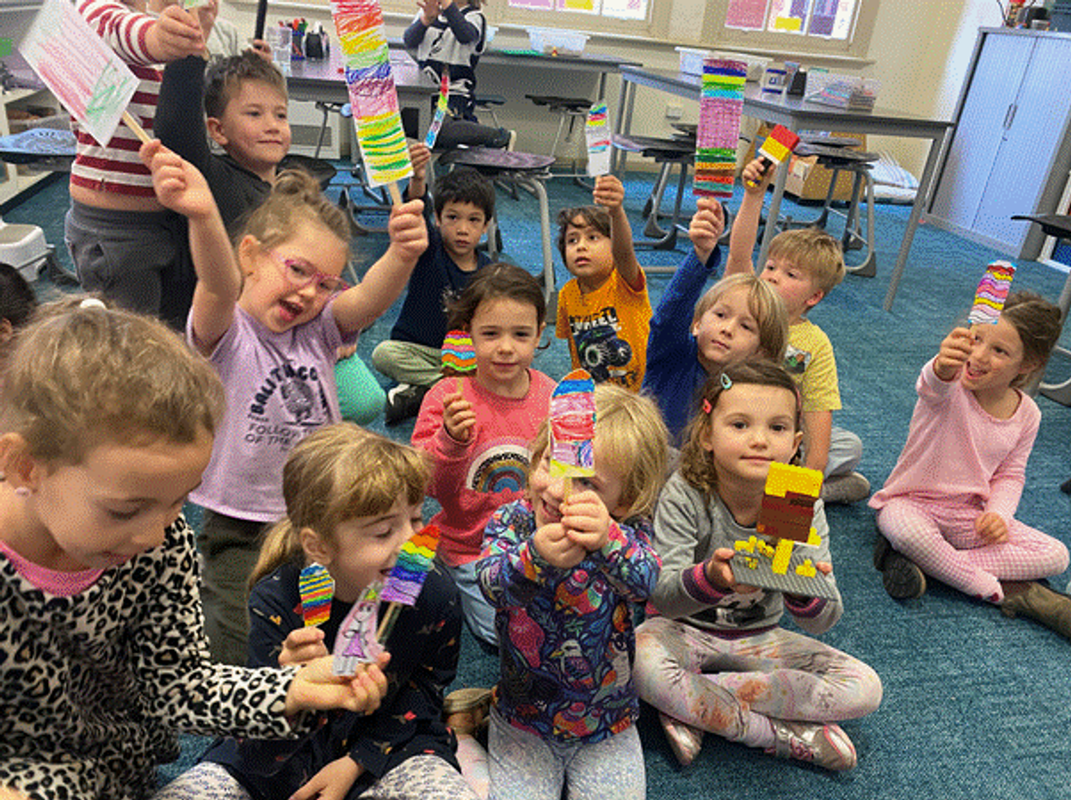 It was pretty confusing as the liquid icy pole was brown, like cola flavour, but it did not smell like cola flavour! Luckily, some students remembered that you make brown by mixing lots of different colours. They made icy poles with lots of colourful stripes, while other students made icy poles with just two colours, like red and green.